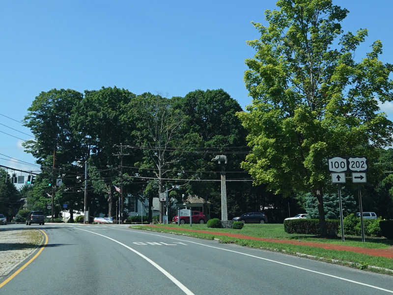 Turn right onto Somers Road at this traffic light to stay on US 202. Somerstown Road continues straight ahead as NY 100.