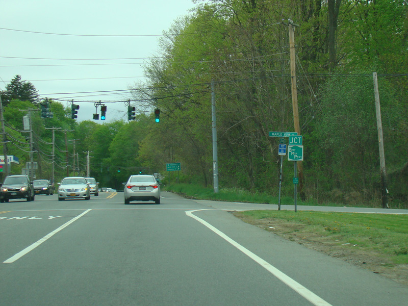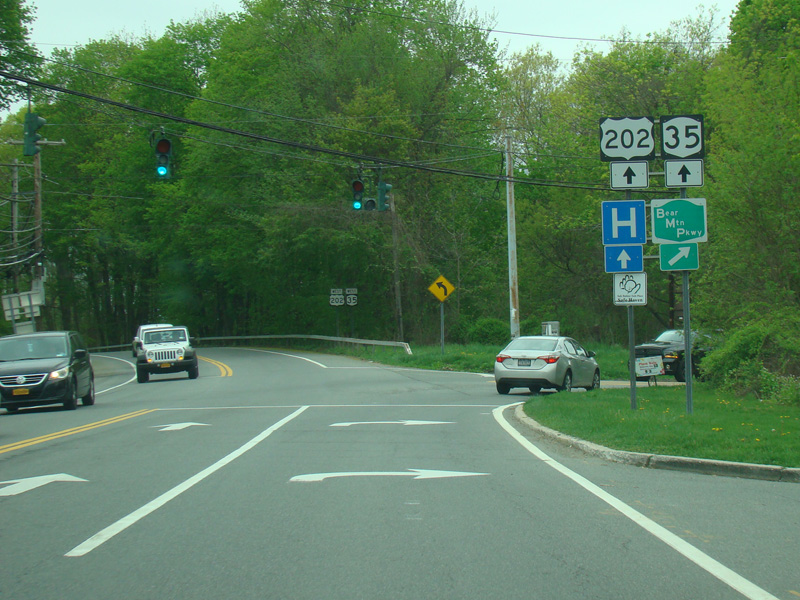 Skipping west to Cortlandt, the western section of the Bear Mountain Parkway ends here and merges in from the right.