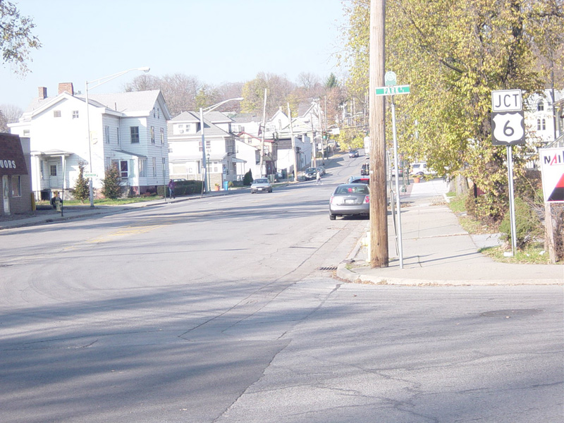 Broad Street intersects Main Street (US 6) at a traffic light. Turn left to go west or turn right to go east. Turn left to stay on US 202 and NY 35. Signage at this intersection is severely lacking, with a single US 6 shield being the only route sign present.