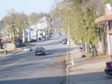 Skipping west to Peekskill, Crompond Road intersects Broad Street at a traffic light. Turn right here to stay on US 202 and NY 35. The signage erroneously makes reference to NY 202.