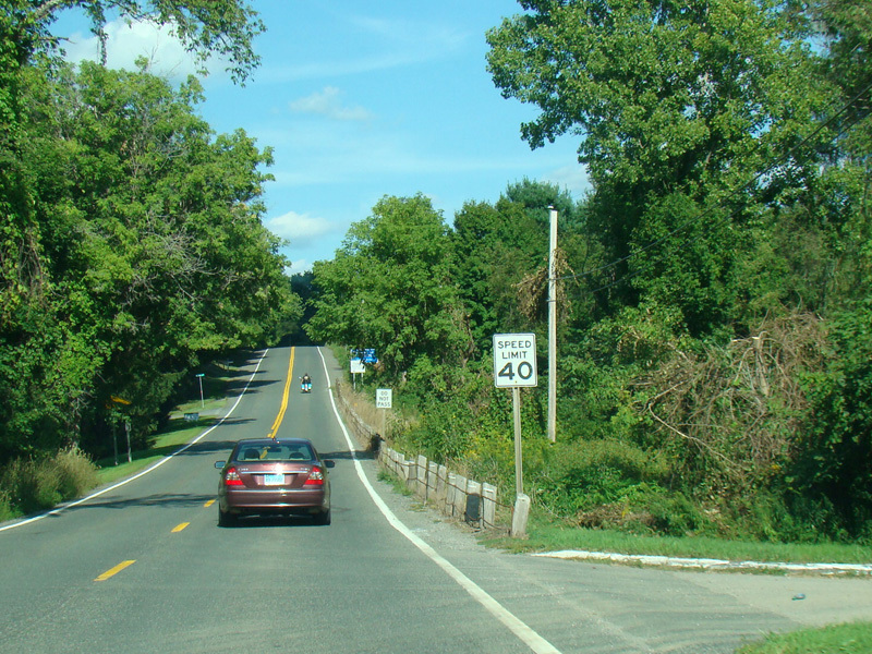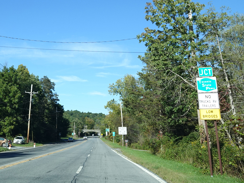 Dutchess Turnpike runs northeast as a four-lane divided highway for a short distance.
