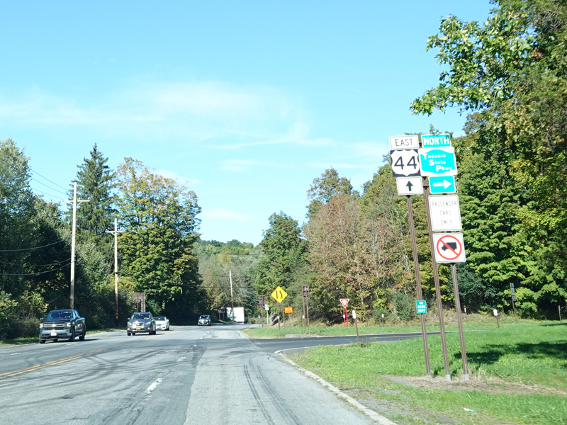 US 44 widens to four lanes. There is an interchange with the Taconic Parkway.