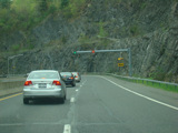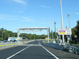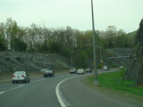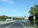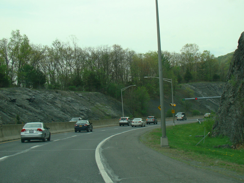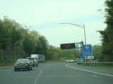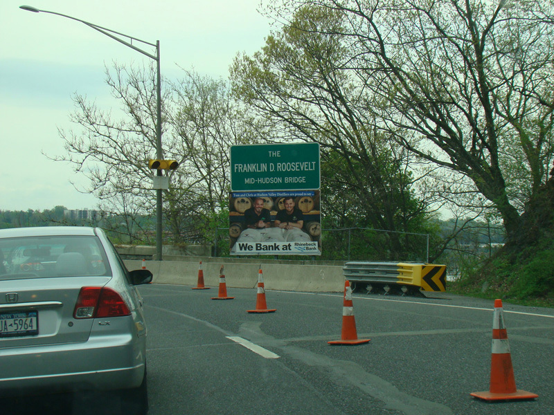 After about half a mile, US 44/NY 55 splits off from US 9W and runs east toward the Hudson River. There is a cashless tolling gantry before crossing the Mid-Hudson Bridge.