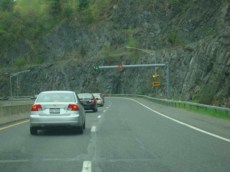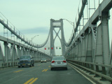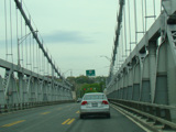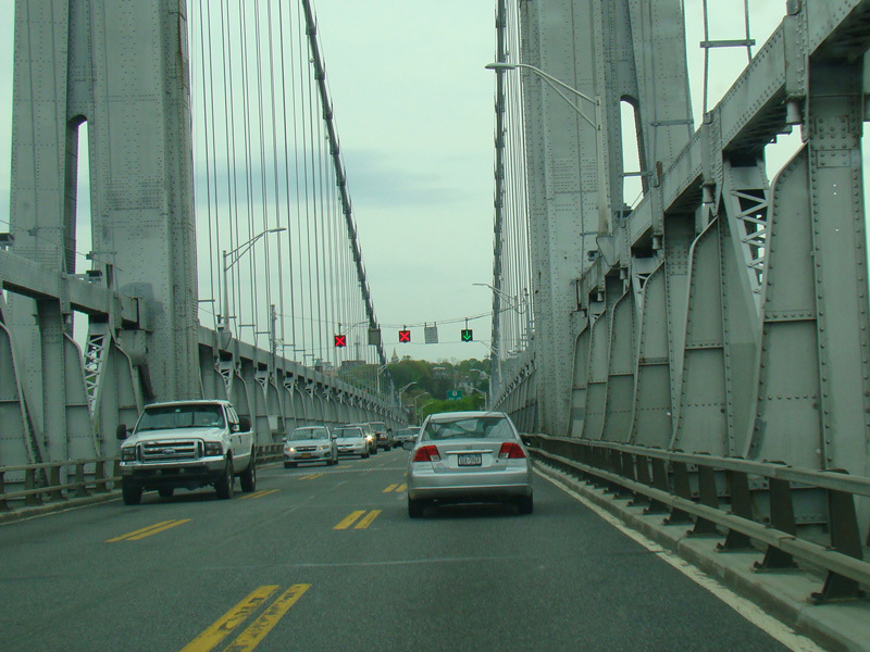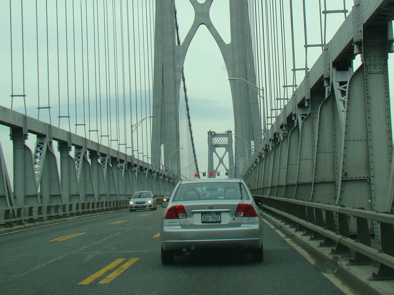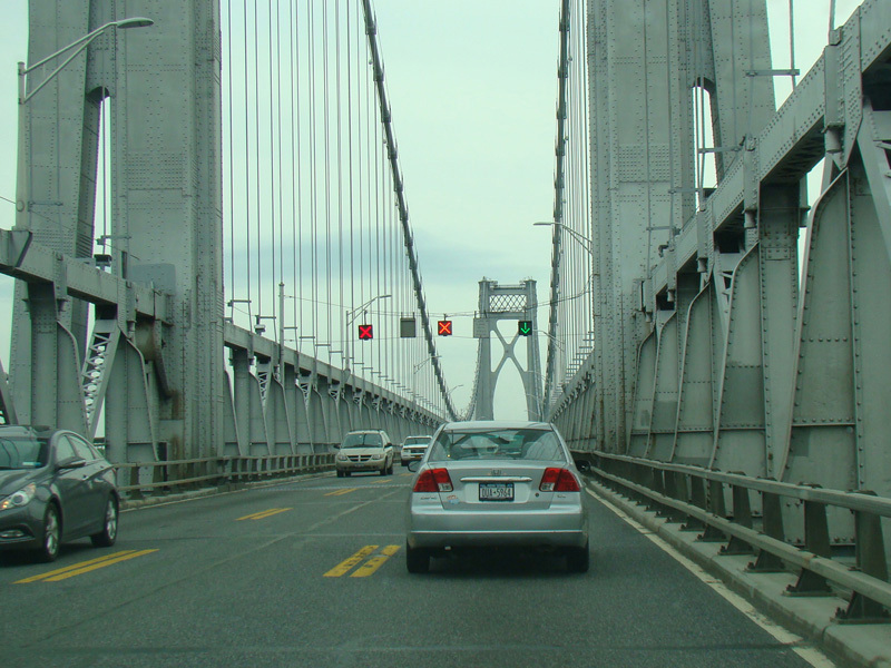The Mid-Hudson Bridge is a suspension bridge across the Hudson River from Highland to Poughkeepsie. It has three lanes with no divider. The middle lanes is reversible.