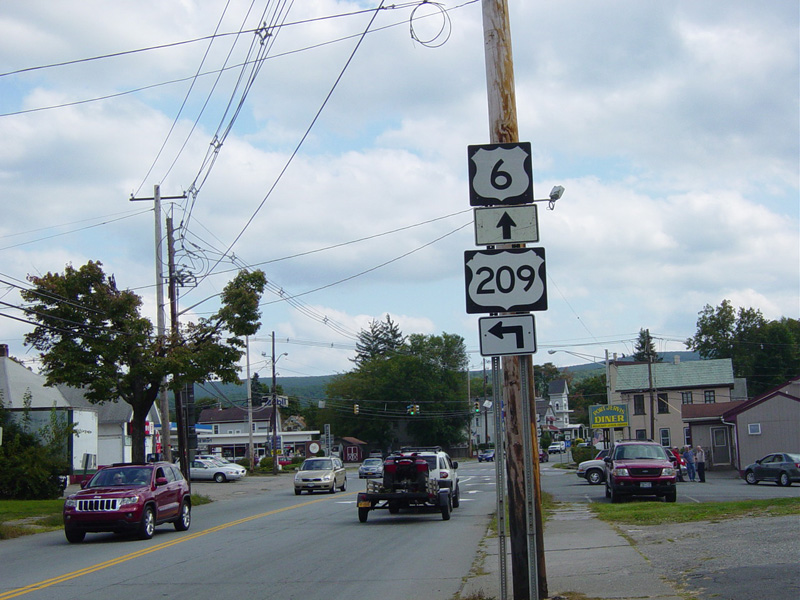 US 6 and US 209 splits at this traffic light. Turn left onto Kingston Avenue for US 209. Continue straight ahead on East Main Street to remain on US 6.