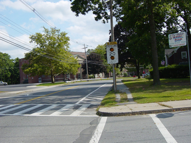 NY 293 begins here at a grade-separated split. All trucks must bear left onto NY 293. Bear right to stay on US 6. There is a truck route following the full length of NY 293 and then US 9W south back to US 6.
