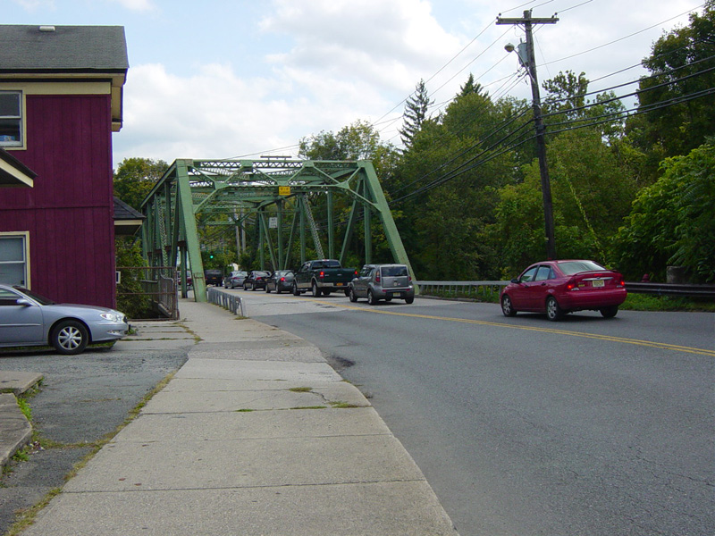Welcome to New York! US 6/US 209 enters the state from Pennsylvania on a bridge over the Delaware River. Here, it is known as Pike Street. There is no state line crossing sign, so motorists who don't know the area won't necessarily know that they've crossed into a new state.