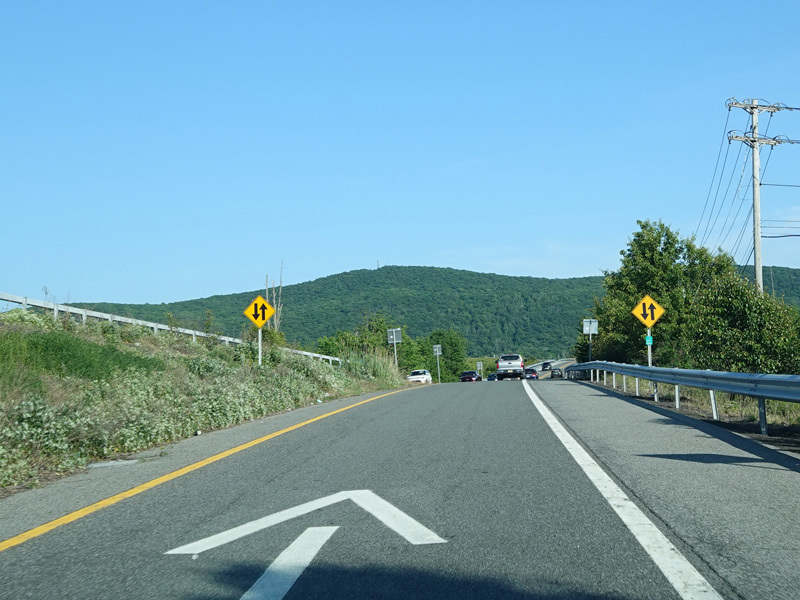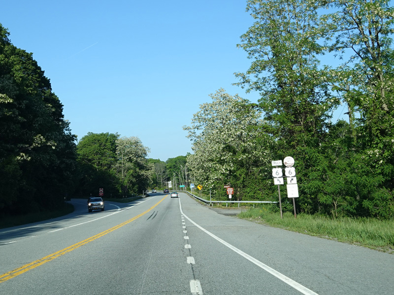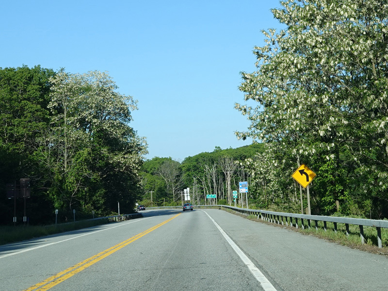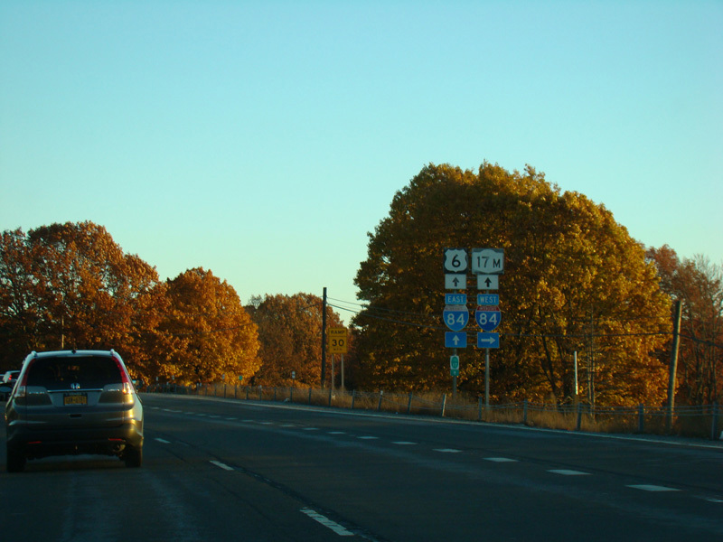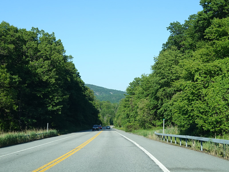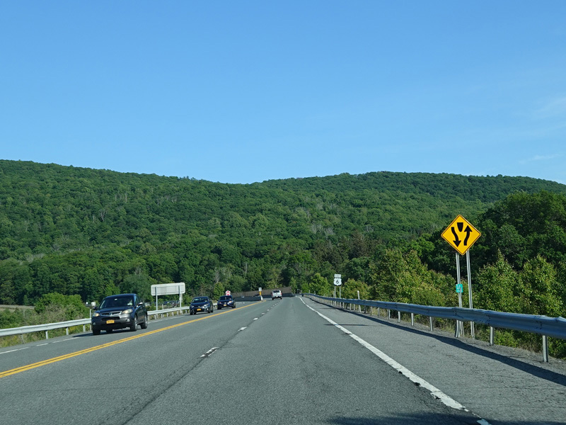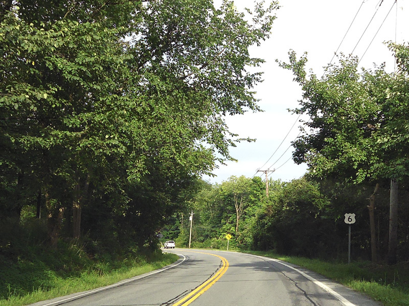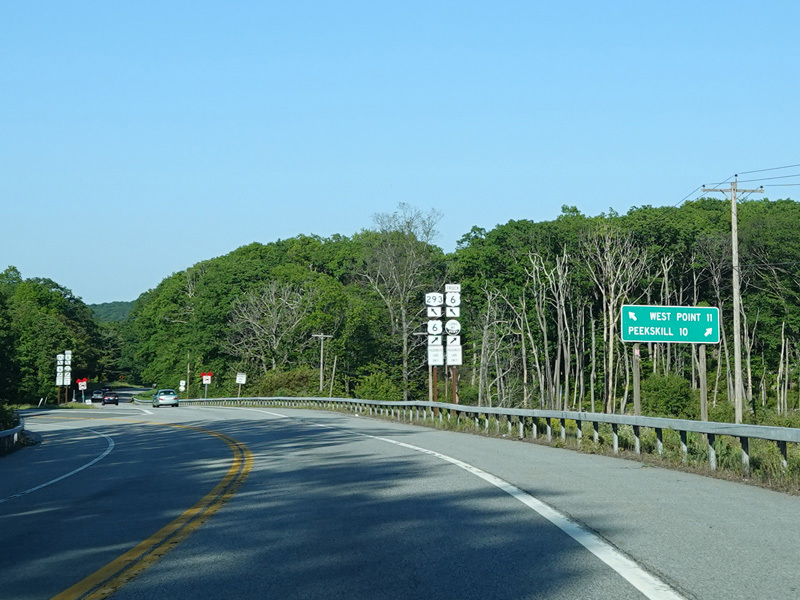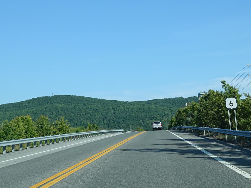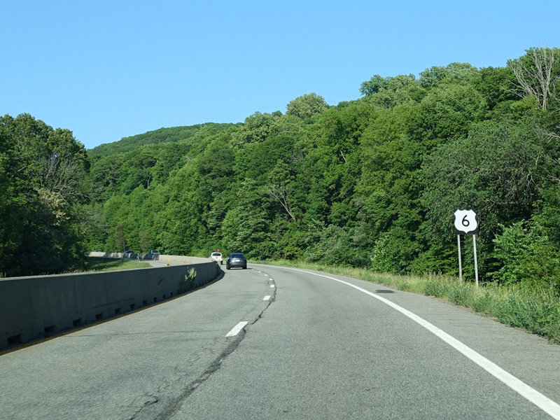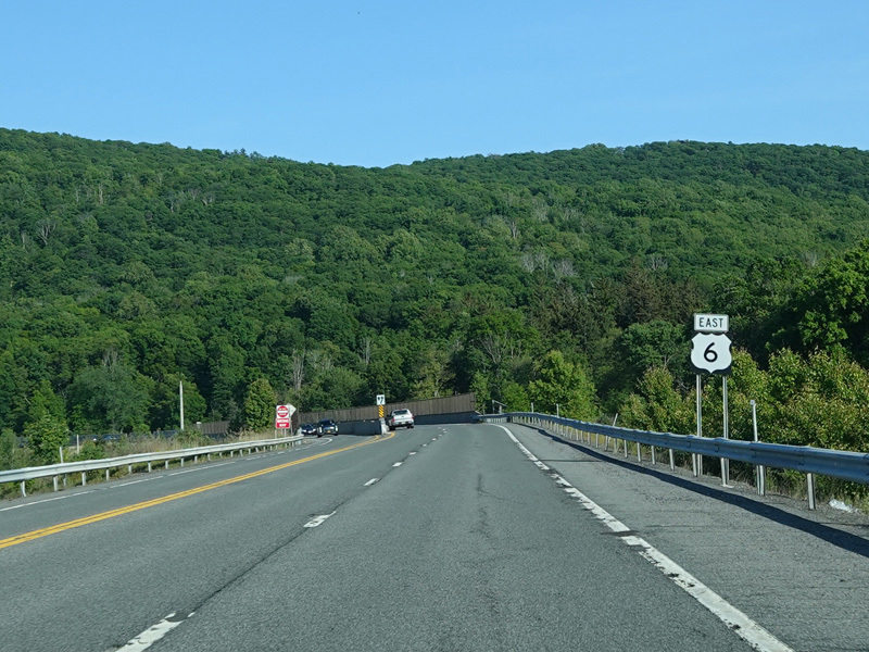 US 6 becomes a divided highway. It passes over the New York Thruway (I-87), but there is no interchange. It then goes up a mountain.