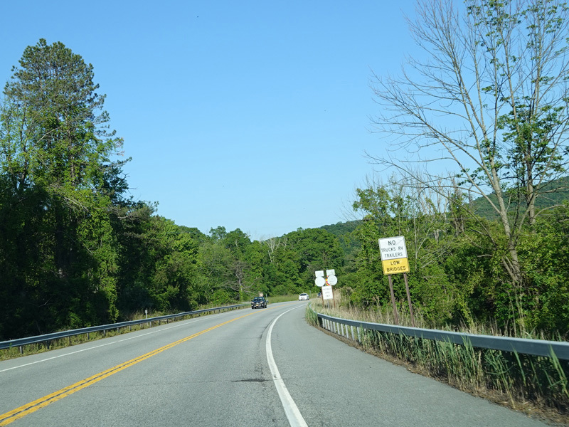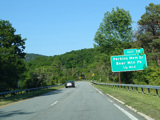 The Long Mountain Parkway ends here at a traffic circle interchange with the Palisades Parkway and Seven Lakes Drive.
