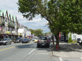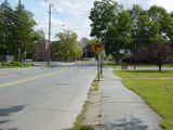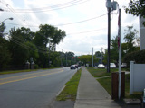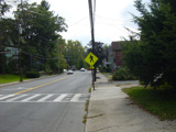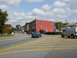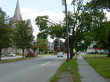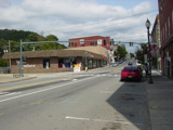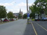 At first, East Main Street is a two-lane divided road. After a few blocks, the median ends.