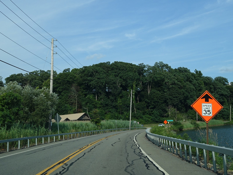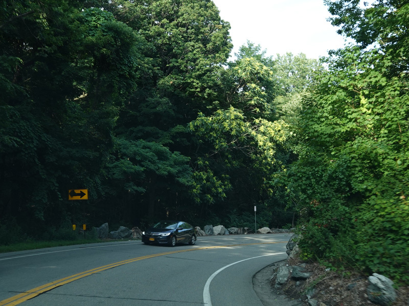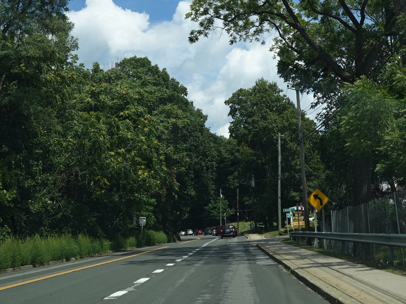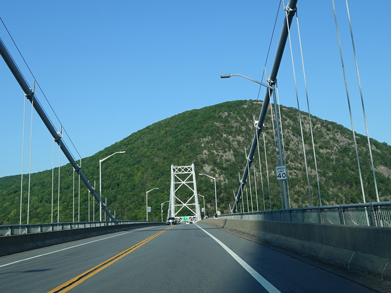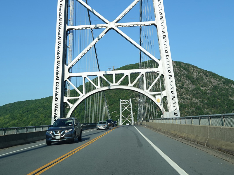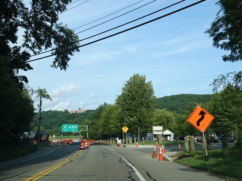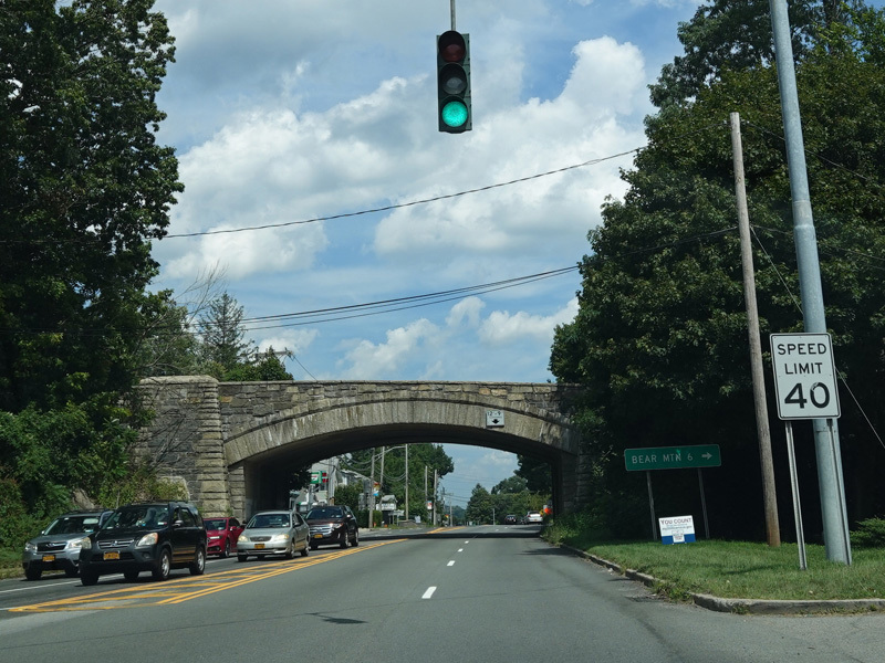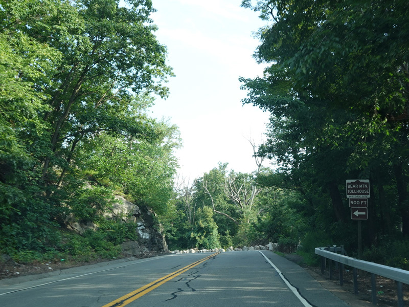 On the other side of the bridge, NY 9D begins on the left. Bear right onto Bear Mountain Bridge Road to stay on US 6/US 202.