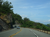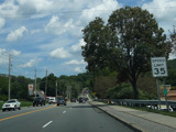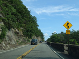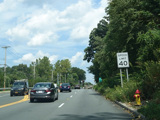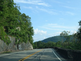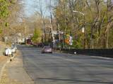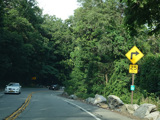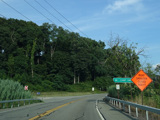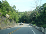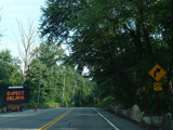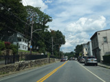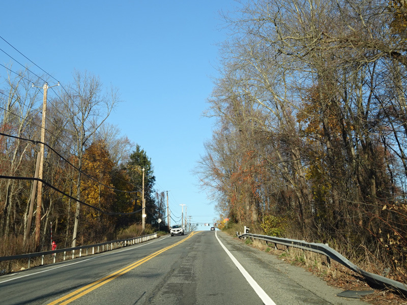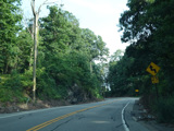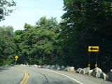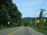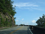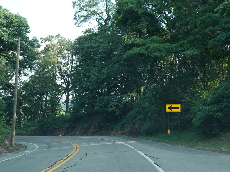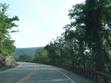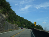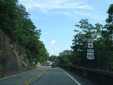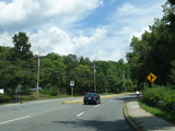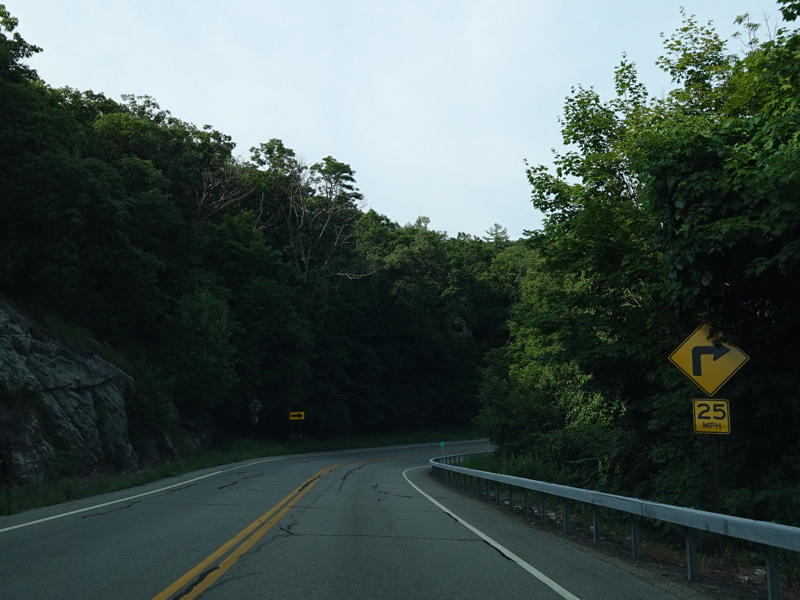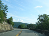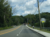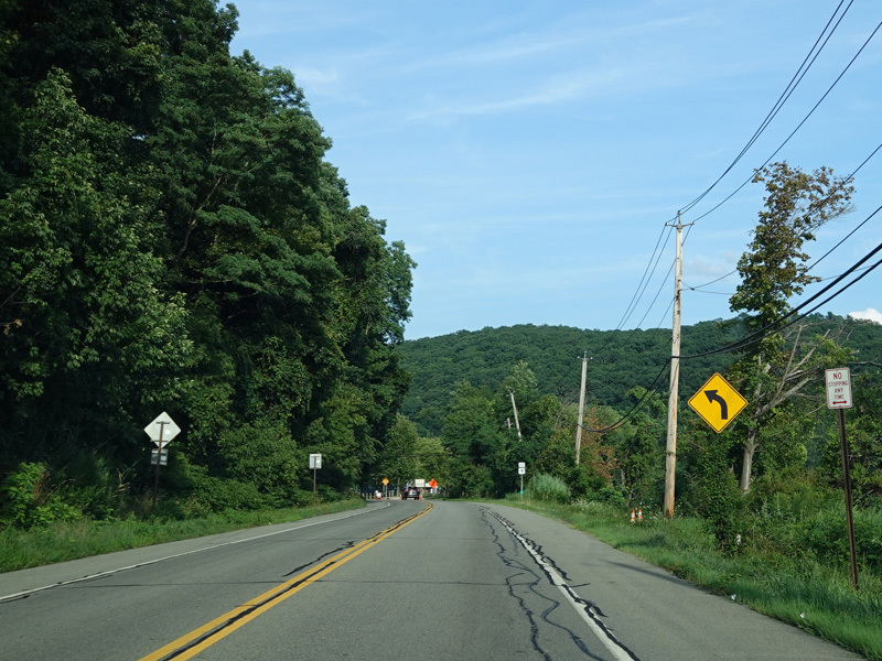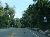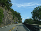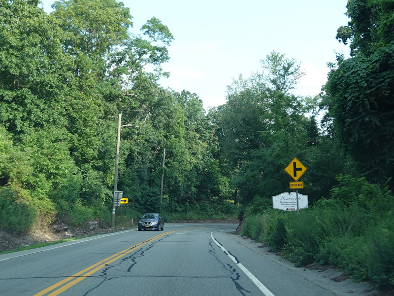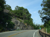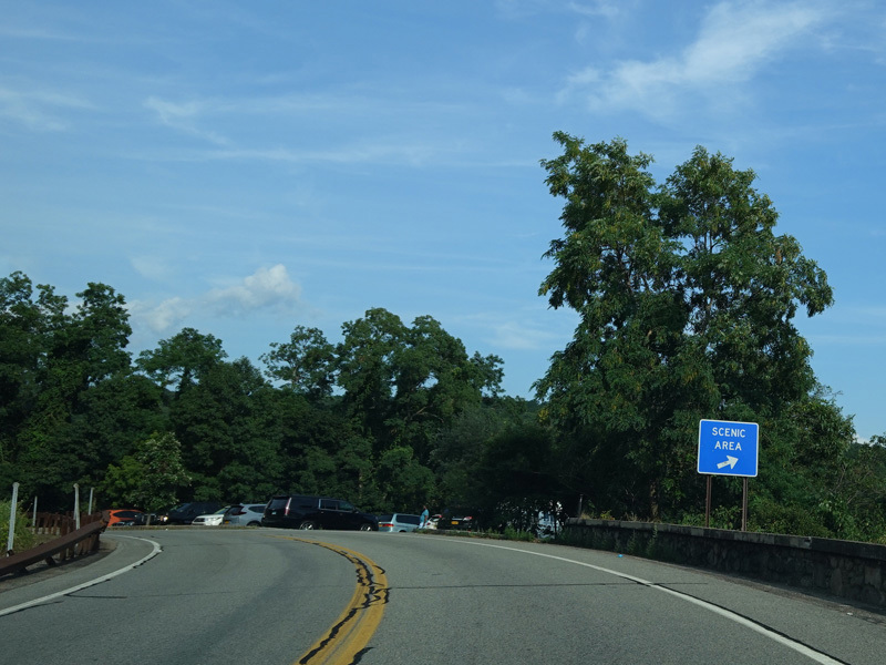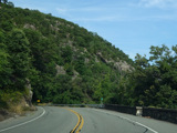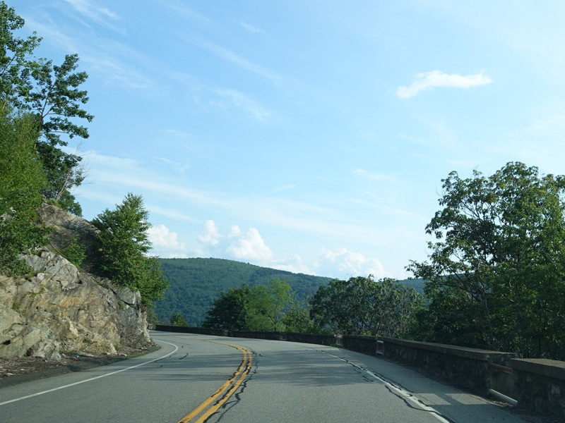 Bear Mountain Bridge Road is informally known to locals at the "goat path" because it runs along the edge of a cliff by the river. The terrain along this stretch is very rocky. There are a couple of sign goofs where US 202 is erroneously marked as NY 202. There is a scenic area on the right.