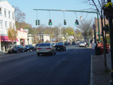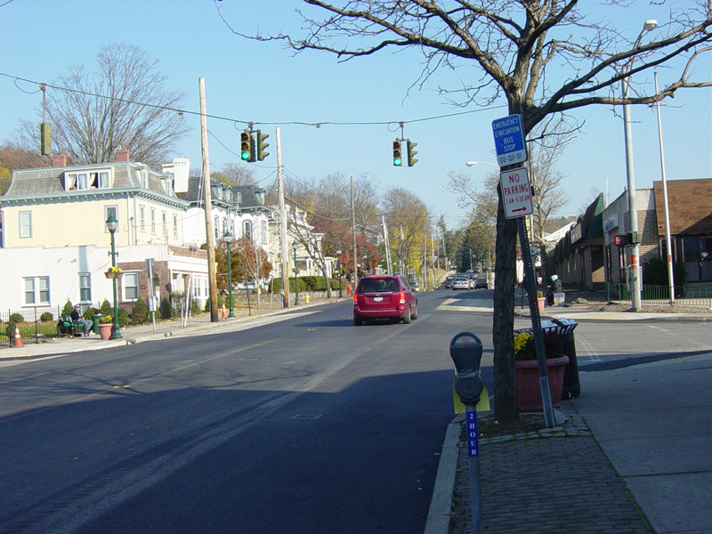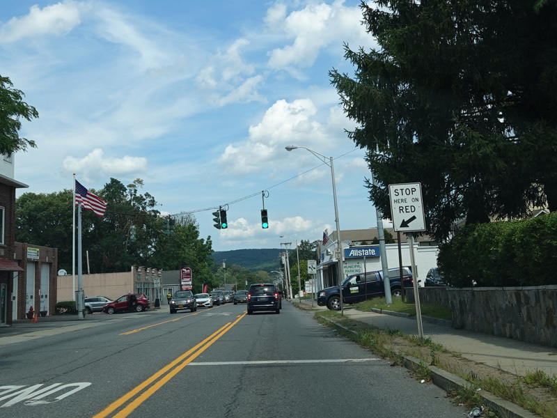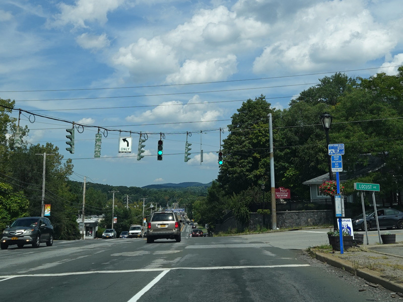 There is a traffic light at Broad Street. US 202/NY 35 splits off to the right here. Continue straight ahead on Main Street to stay on US 6.