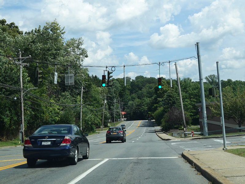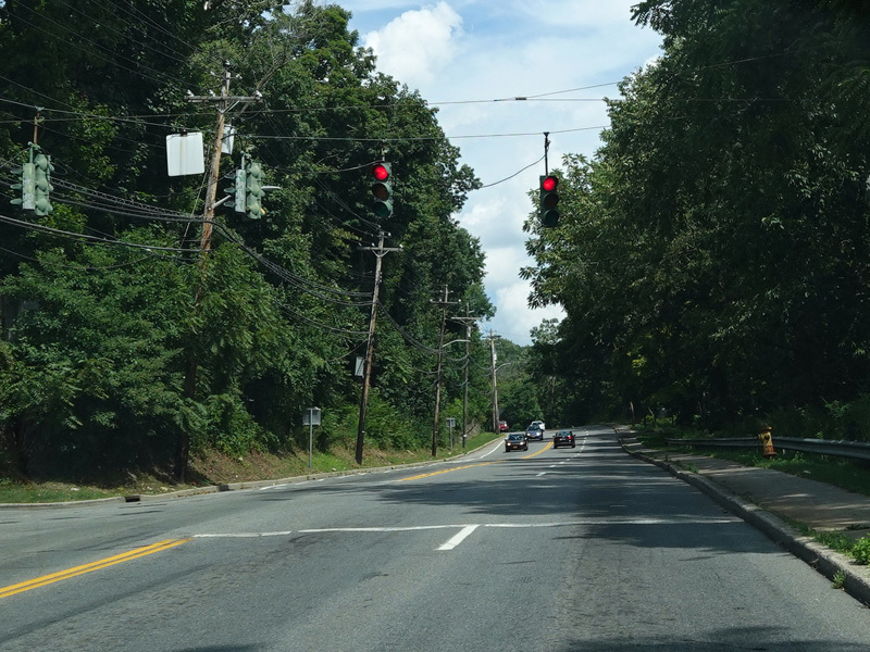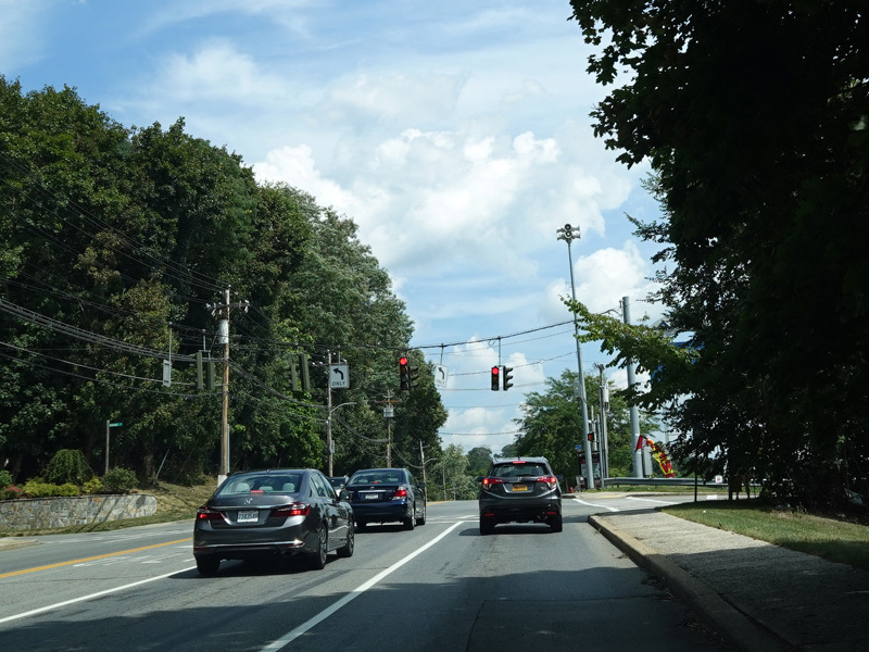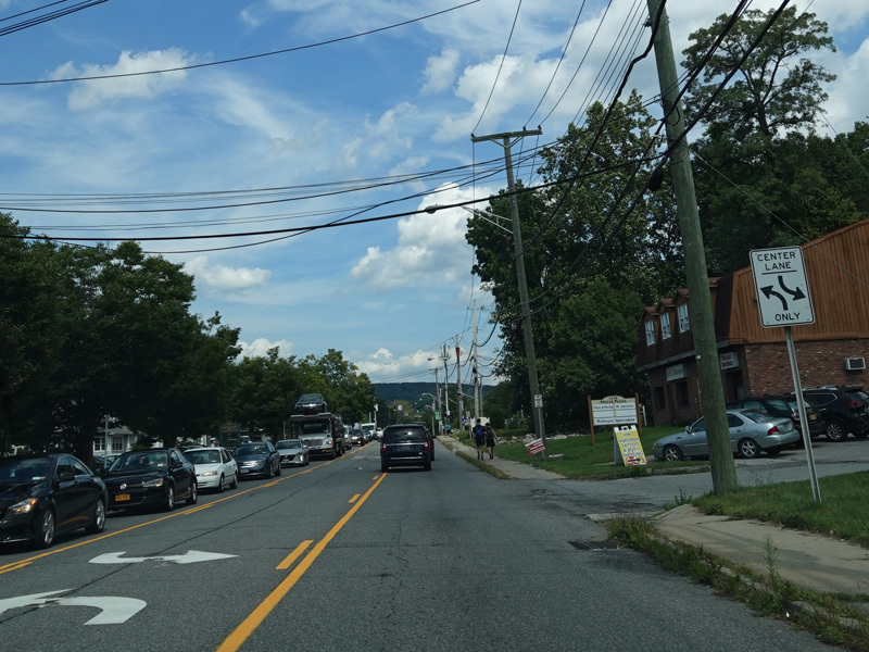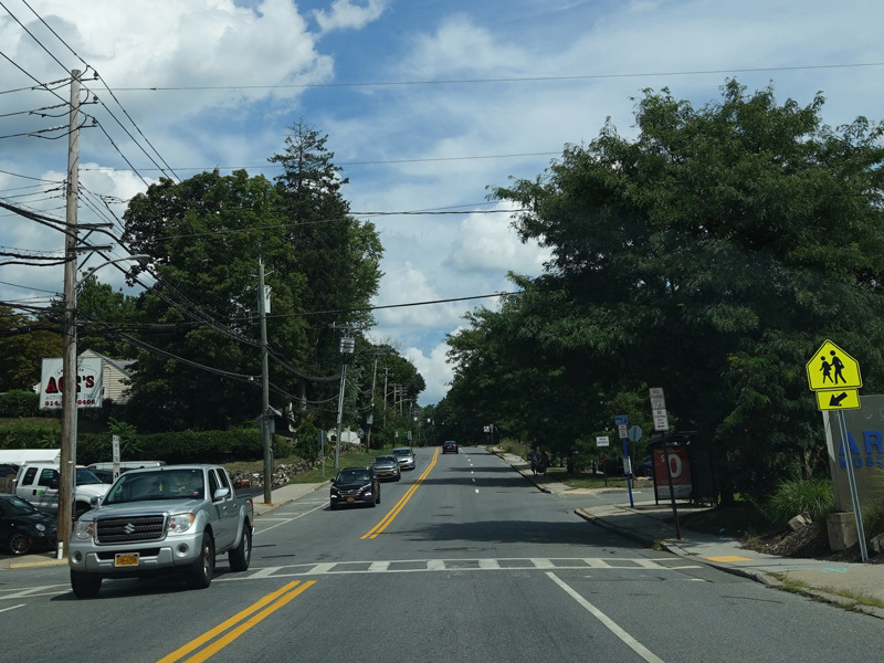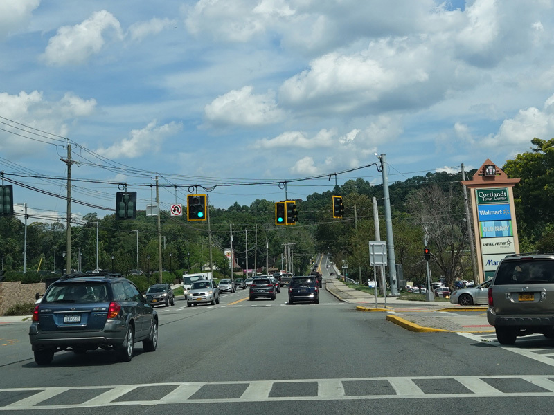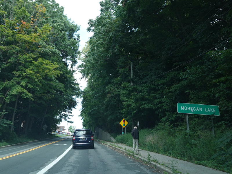 Welcome to Mohegan Lake! There is a traffic light at Lexington Avenue. The left lane becomes a left turn lane and drops out here.