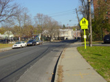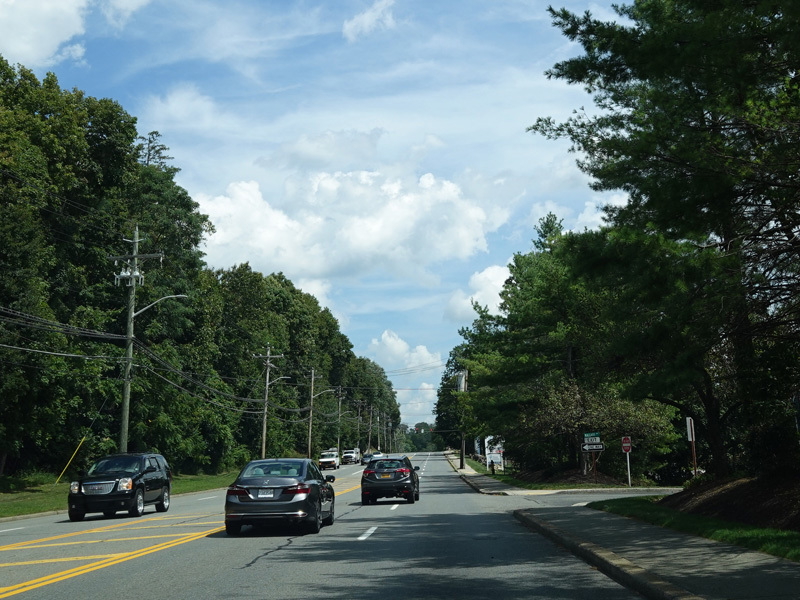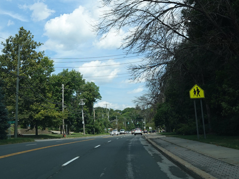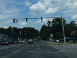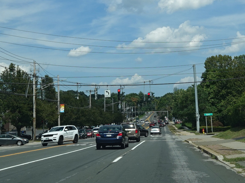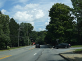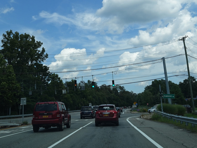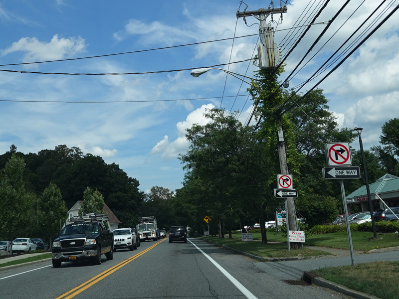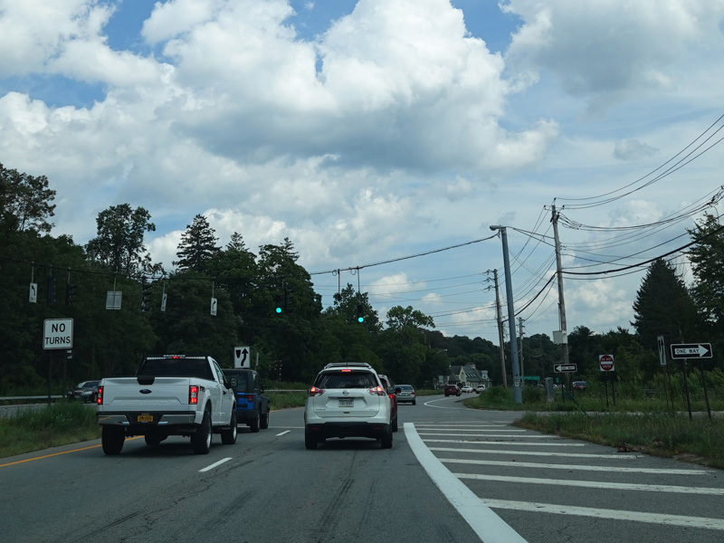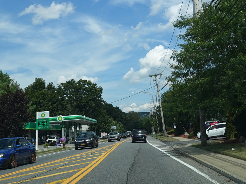 Welcome to Mohegan Lake! There is a traffic light at Lexington Avenue. The left lane becomes a left turn lane and drops out here.