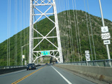 The Bear Mountain Bridge is a suspension bridge across the Hudson River to Westchester County.