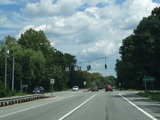 There is a traffic light at Barger Street (NY 132). Turn right to go south.