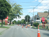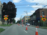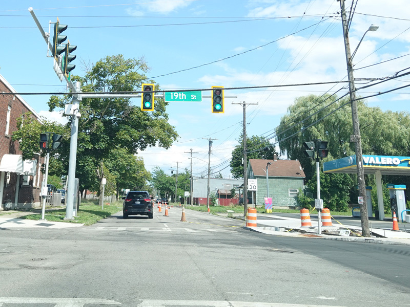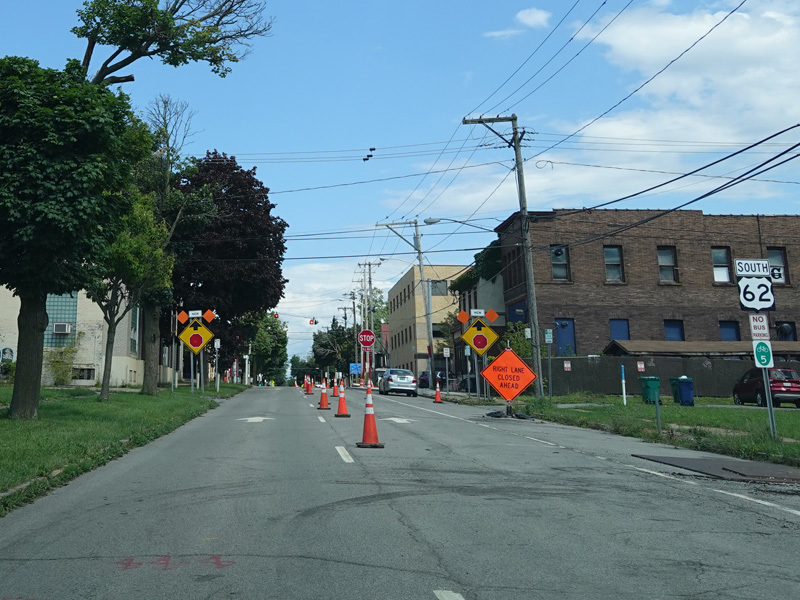 US 62 begins at Main Street (NY 104) in Niagara Falls. The first section is a pair of parallel one-way streets. Southbound traffic follows Ferry Avenue. Most of the cross streets in this area are numbered. There are a couple of stop signs, as well as traffic lights at Portage Road and 19th Street.