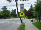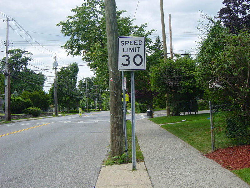 These signs were found on Broadway in Dobbs Ferry. They have been replaced with more modern pedestrian crossing signs, and the speed limit in the area has been lowered to 20 MPH.