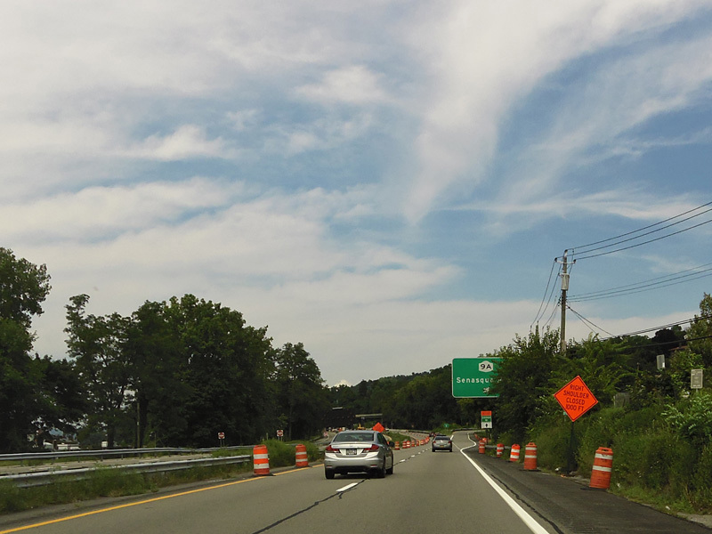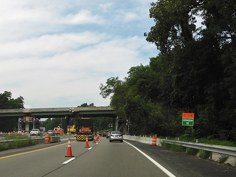 These pictures show the Croton Expressway northbound as it appeared while construction was in progress to rehabilitate one of the overpasses.