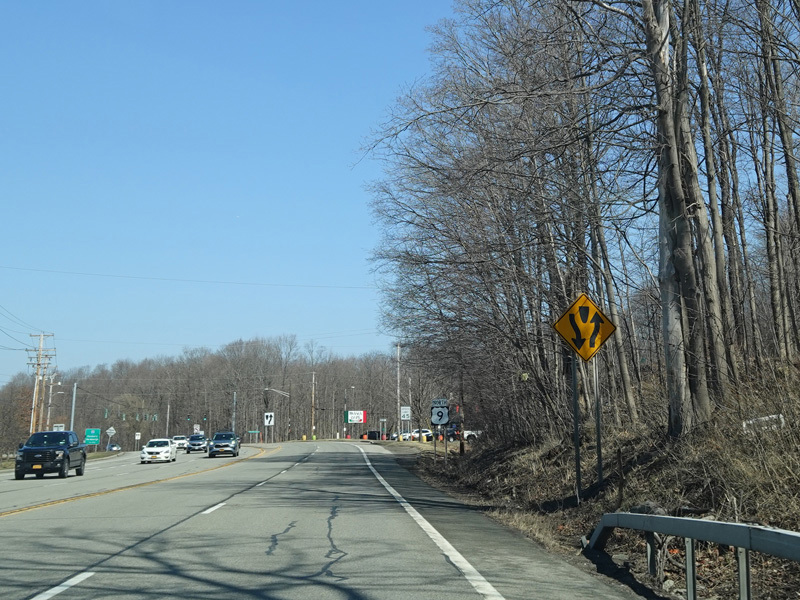 US 9 intersects Main Street (NY 52) at a traffic light. Turn right to go east or left to go west.