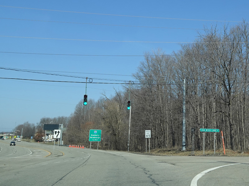 New Hackensack Road (CR 104) begins on the right at this traffic light.