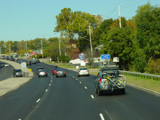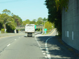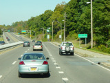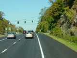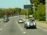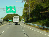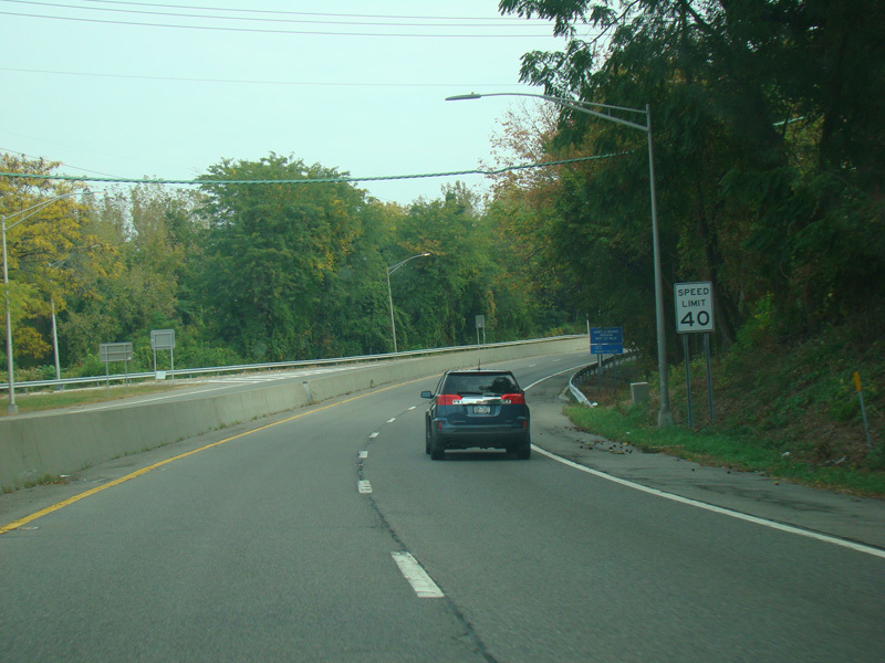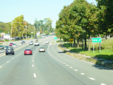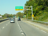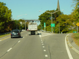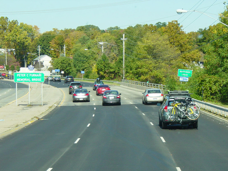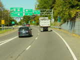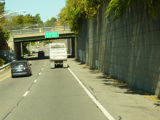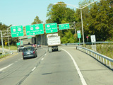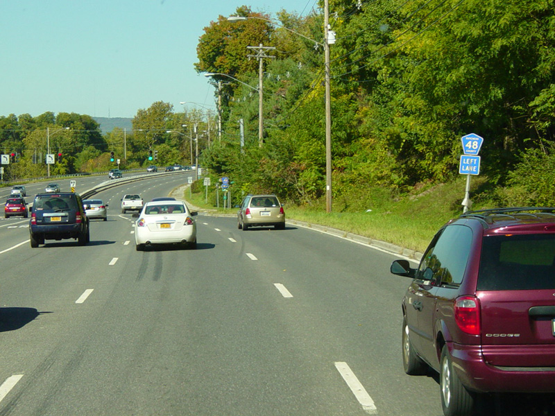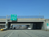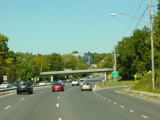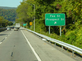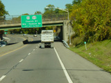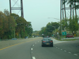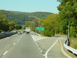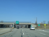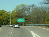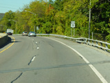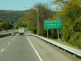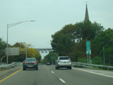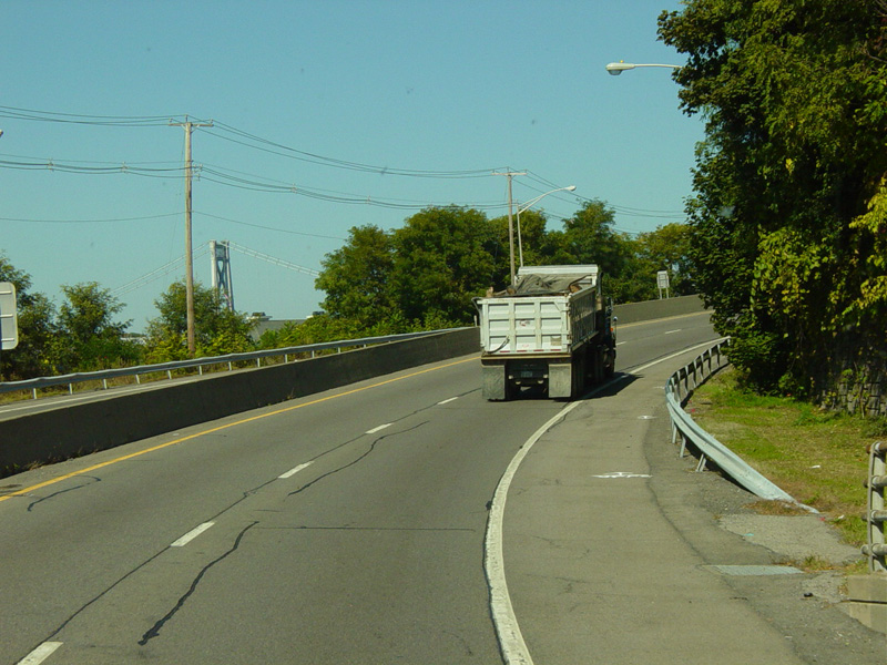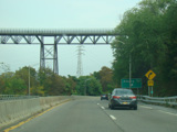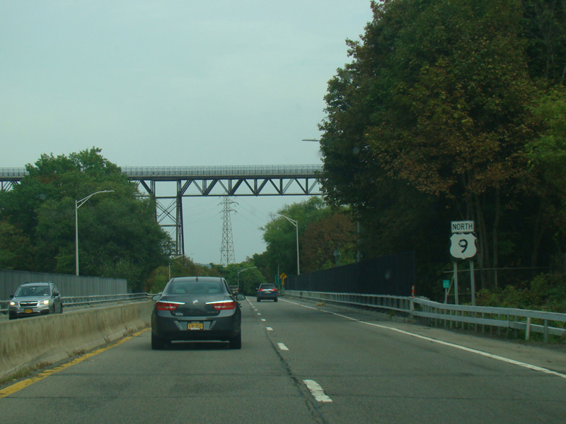 There is an exit for Albany Street. Immediately thereafter, the expressway passes under the Walkway Over the Hudson, an old railroad bridge over the Hudson River that has been converted into a pedestrian bridge.