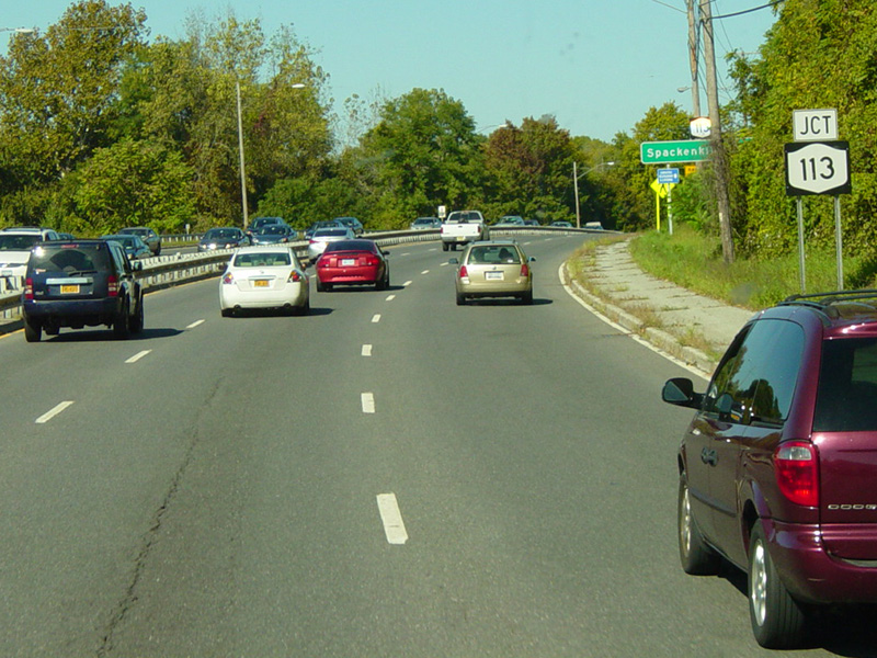 There is a cloverleaf interchange with Spackenkill Road (NY 113), which ends just west of here at an IBM facility.