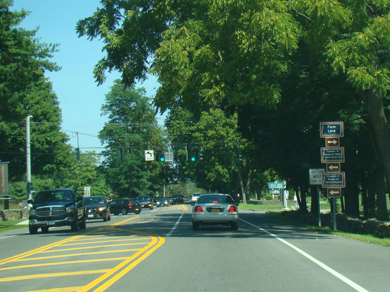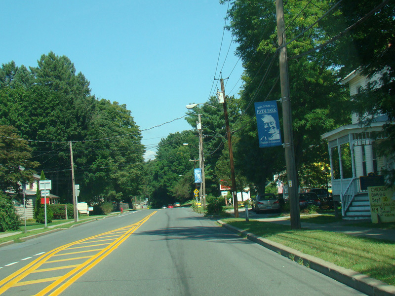 Skipping a few miles to Hyde Park, Albany Post Road runs north as a two-lane undivided road.