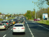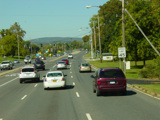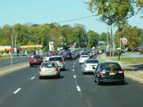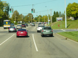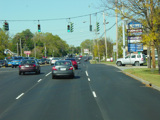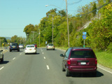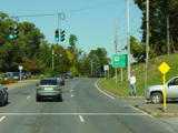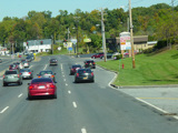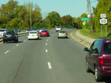 Welcome to the City of Poughkeepsie! US 9 becomes an expressway at the city line. The first exit is for Academy Street and South Avenue. The right lane becomes an exit only lane, and the expressway narrows down to two lanes north of this exit.