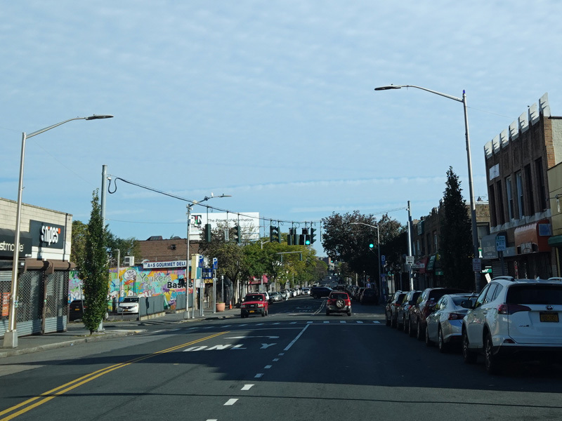 Broadway widens to four lanes again and then narrows back down to two lanes after a short distance.