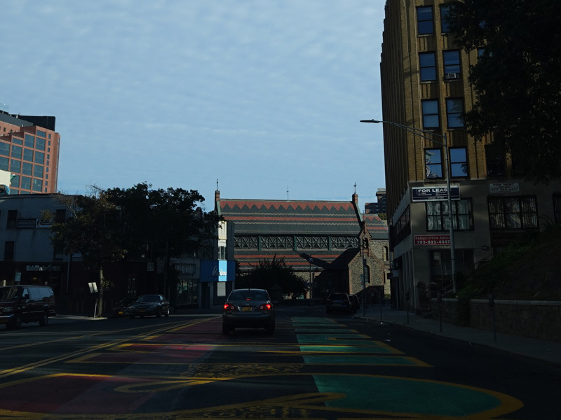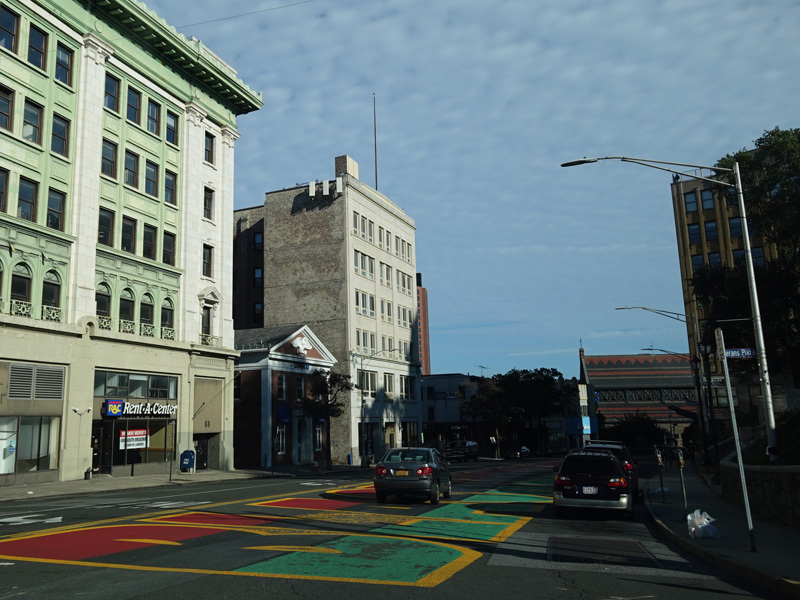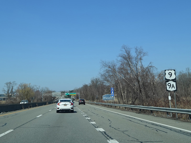 The roadway splits. Bear right for Palisade Avenue or left to stay on Broadway. Hopefully, you know where you're going if you're trying to follow US 9 through here because there's no signage.