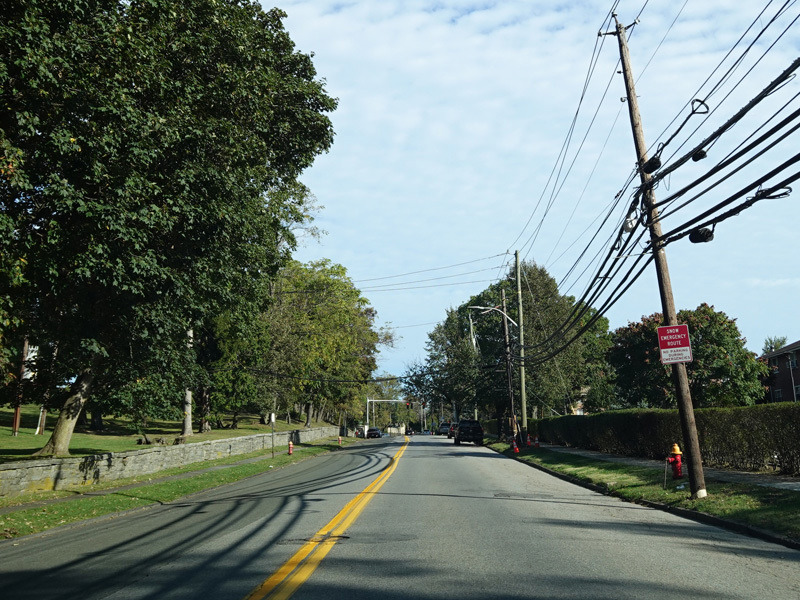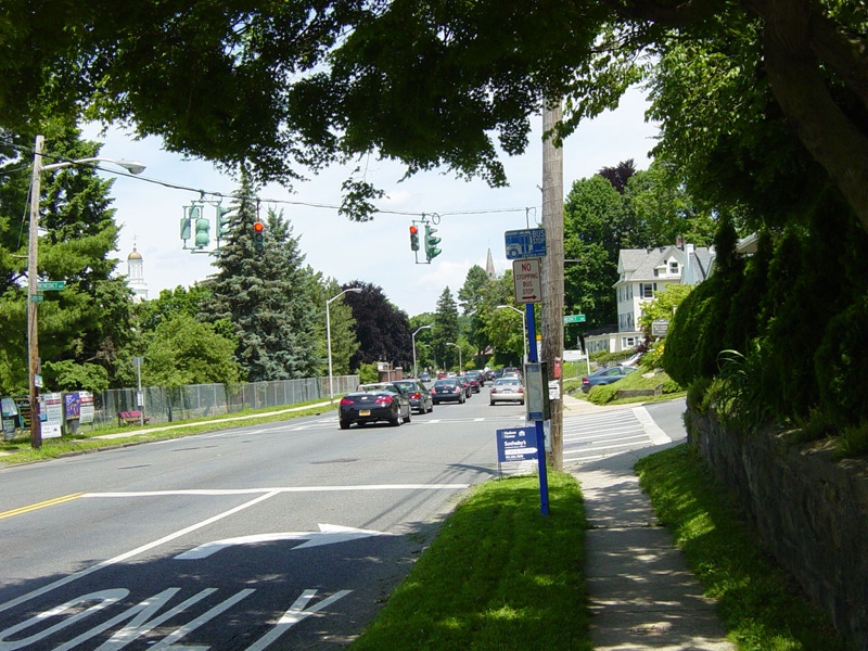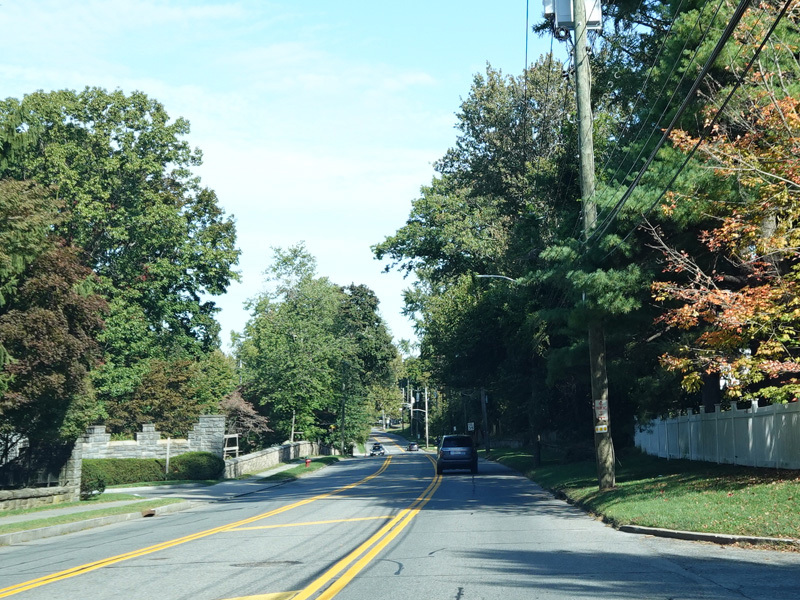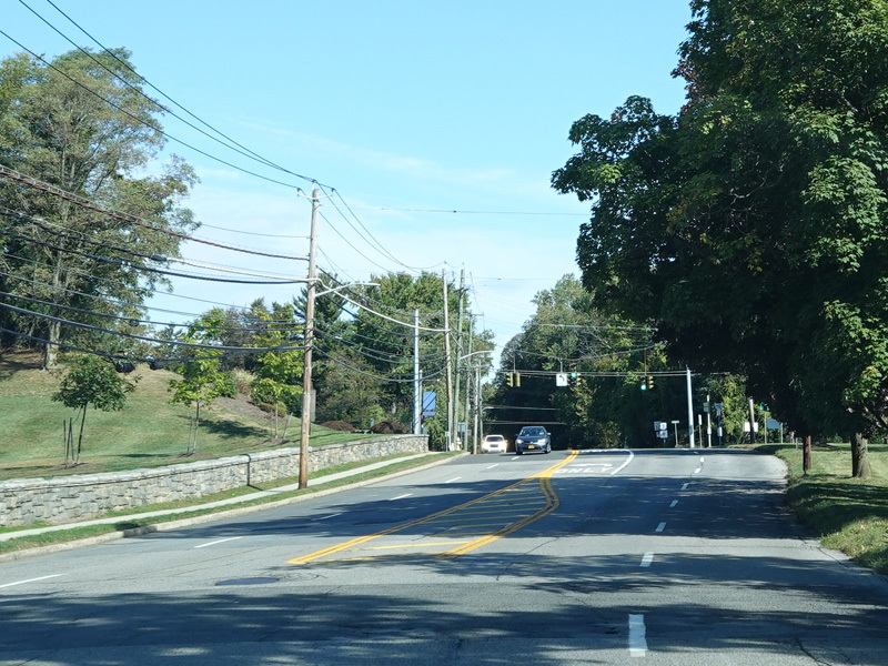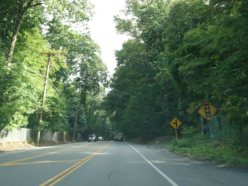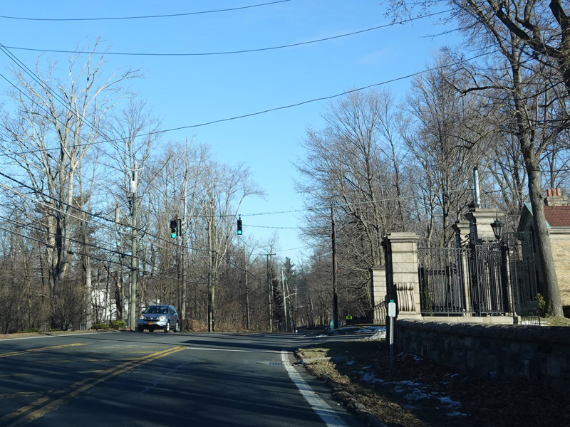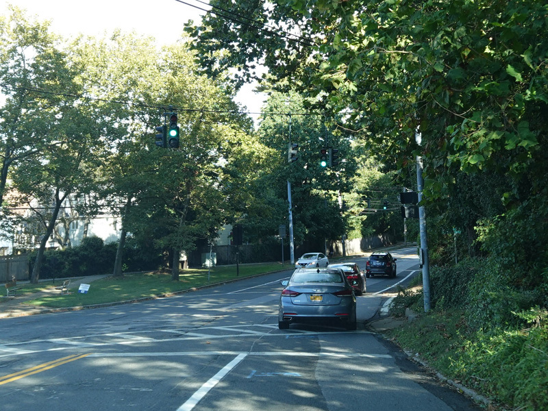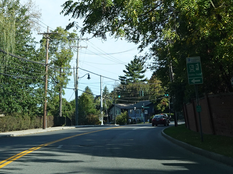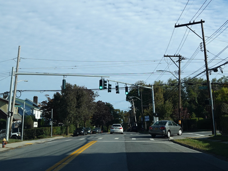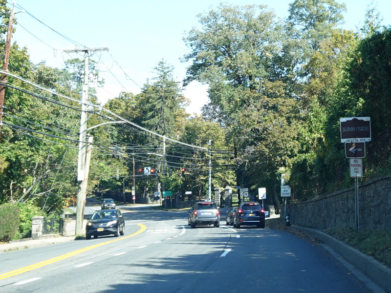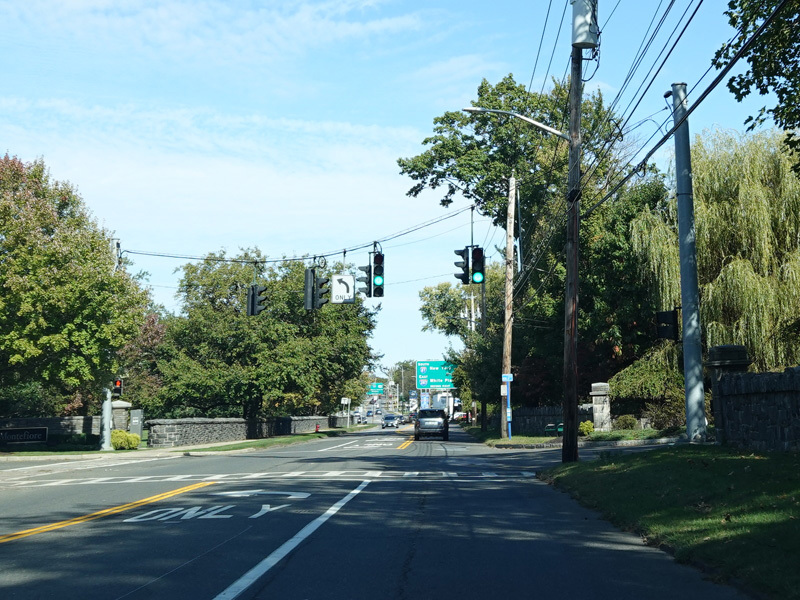 There is a traffic light at Ashburton Avenue. NY 9A splits off to the right here. Once again, there is no signage.