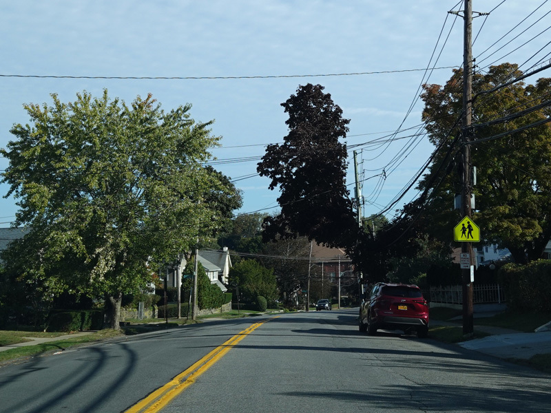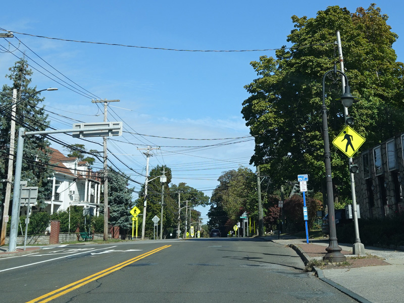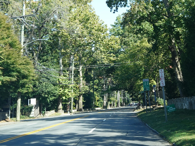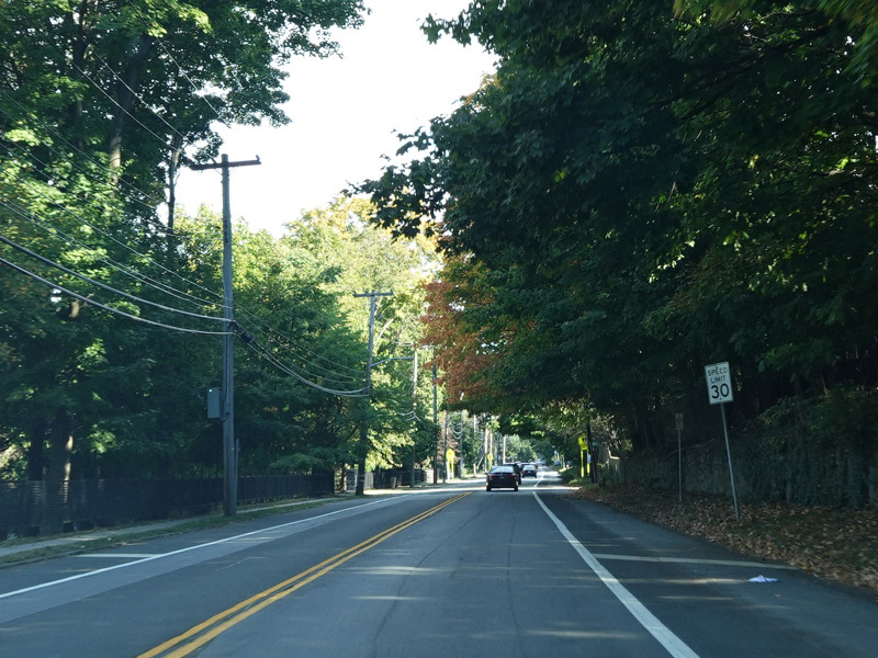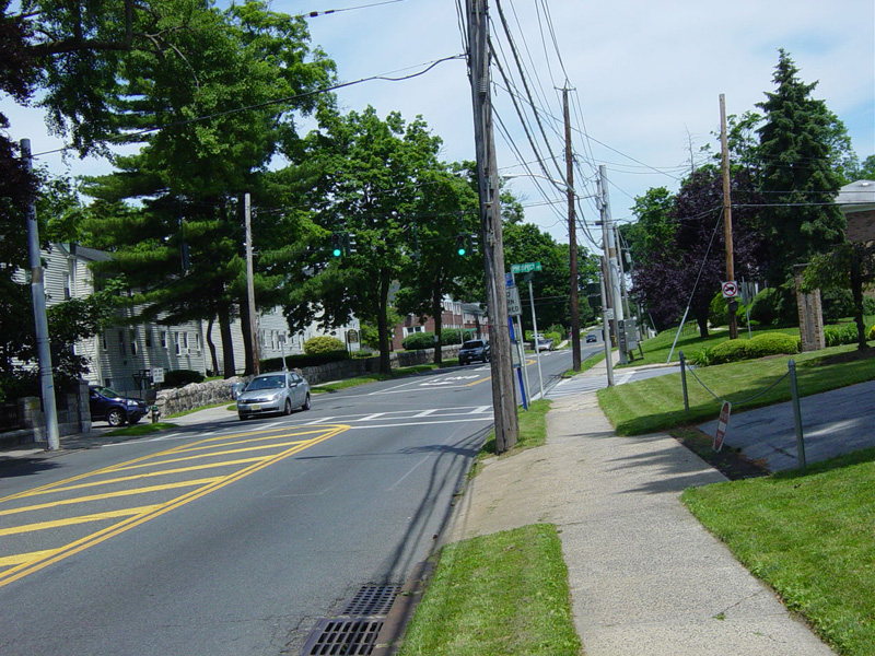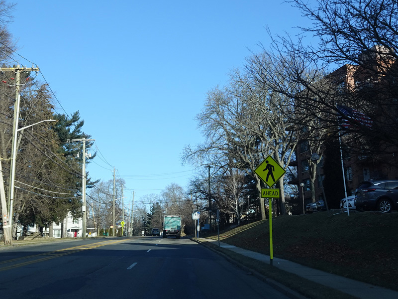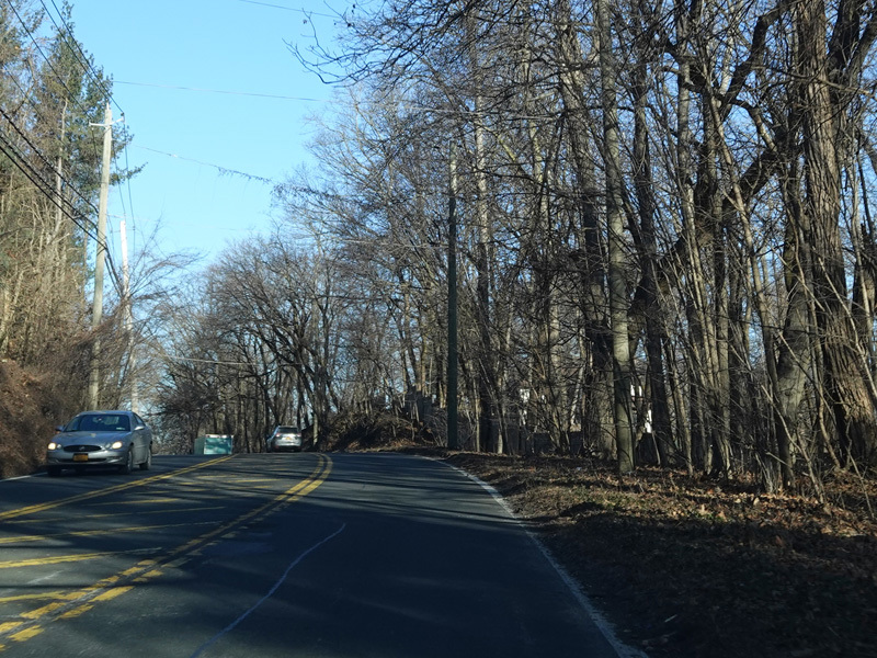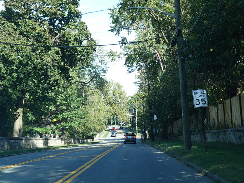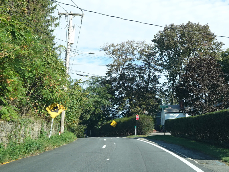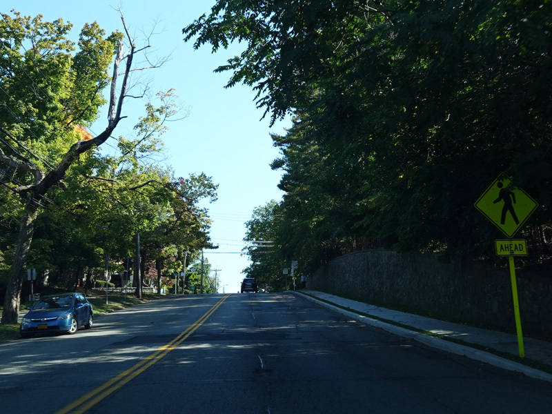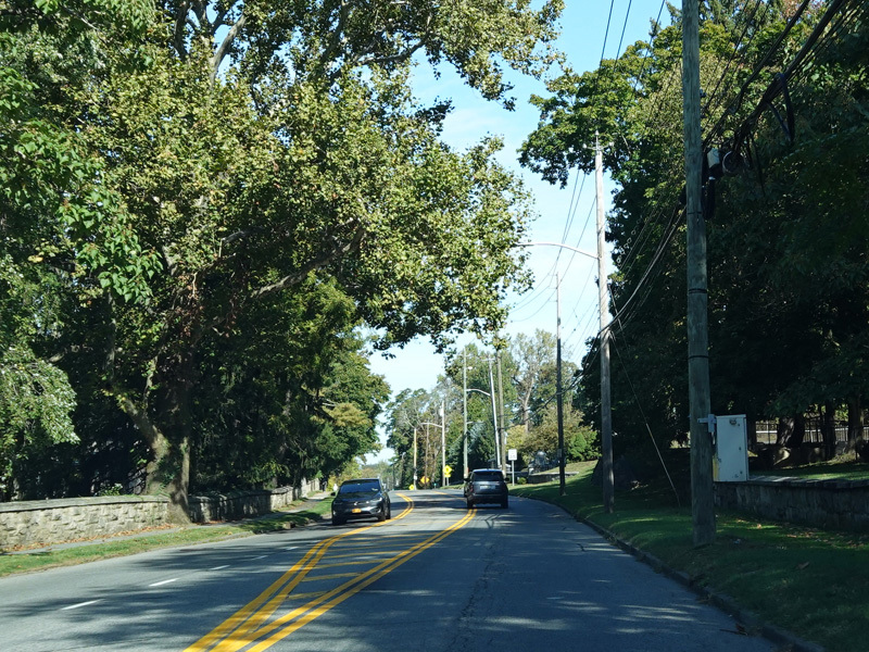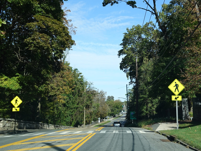 There is a traffic light at Ashburton Avenue. NY 9A splits off to the right here. Once again, there is no signage.