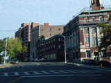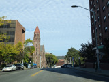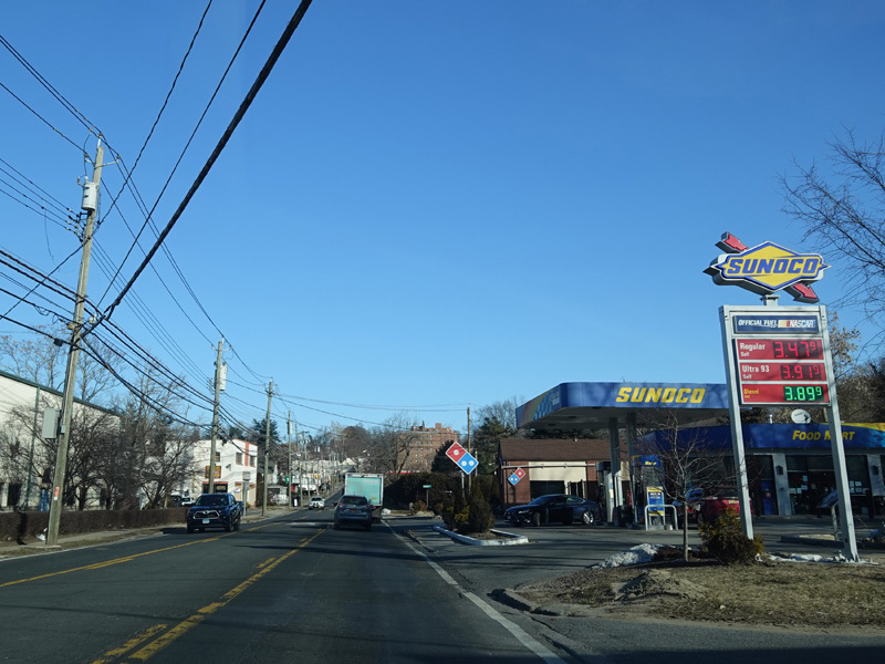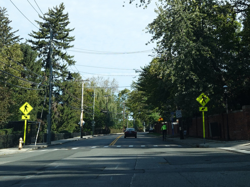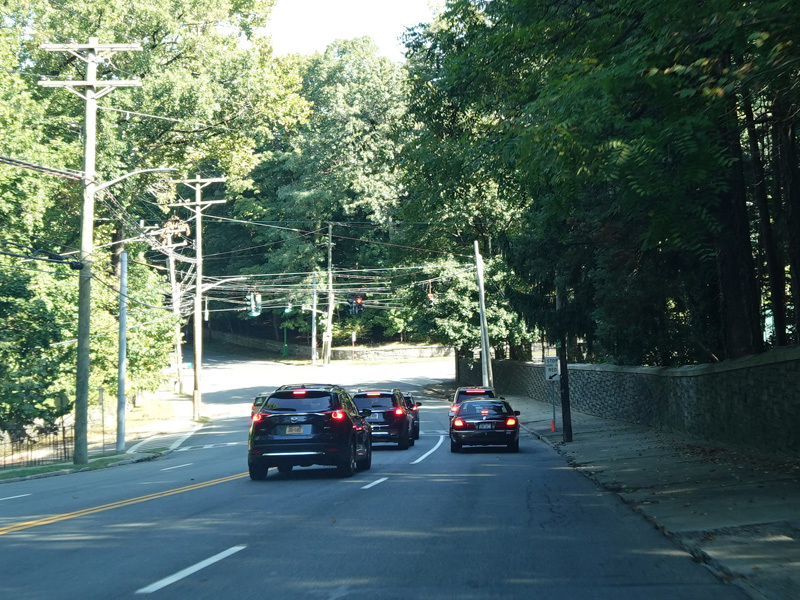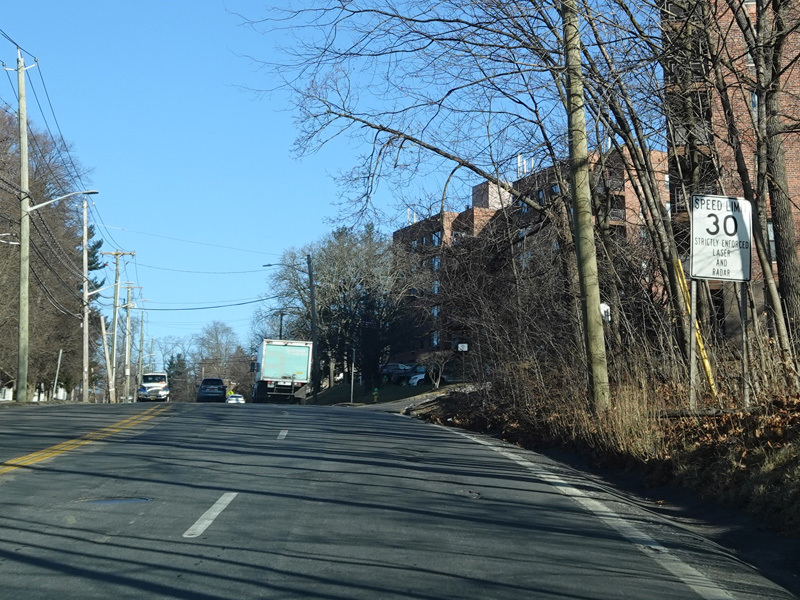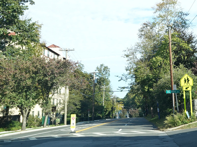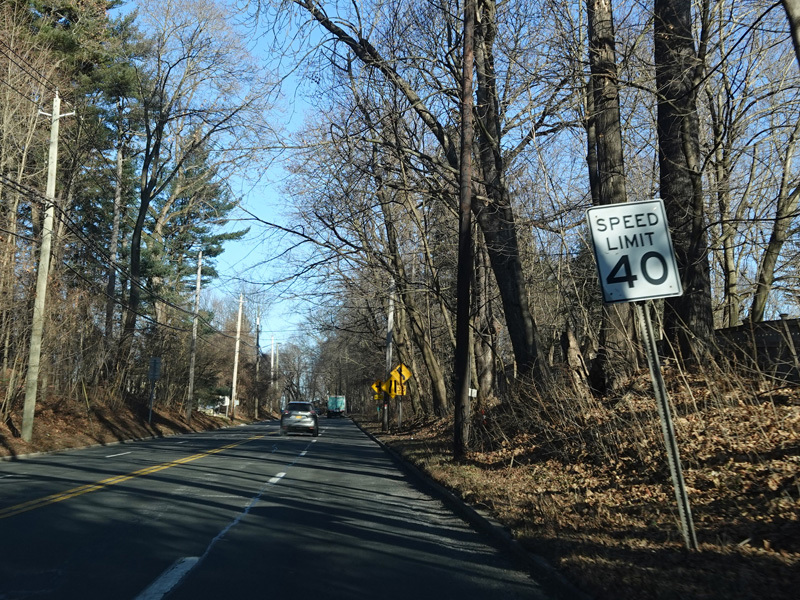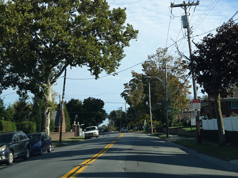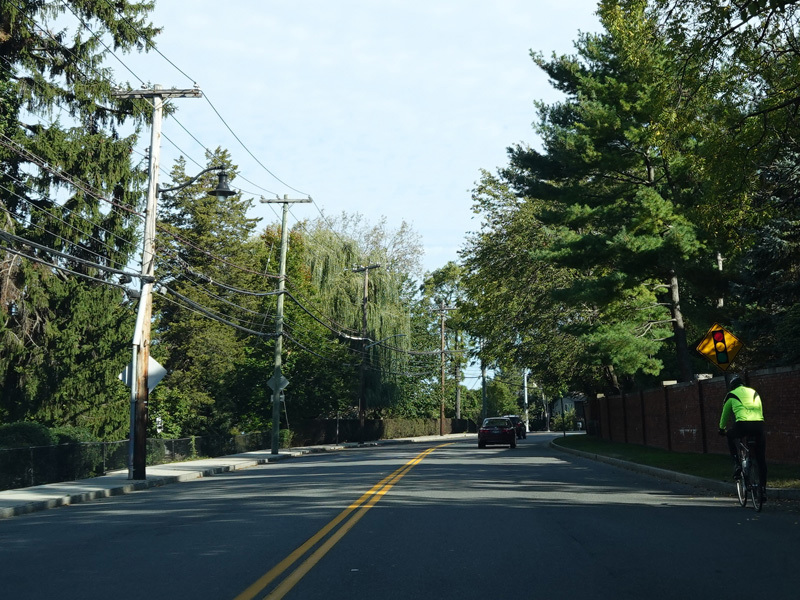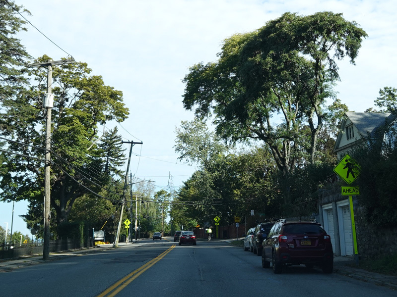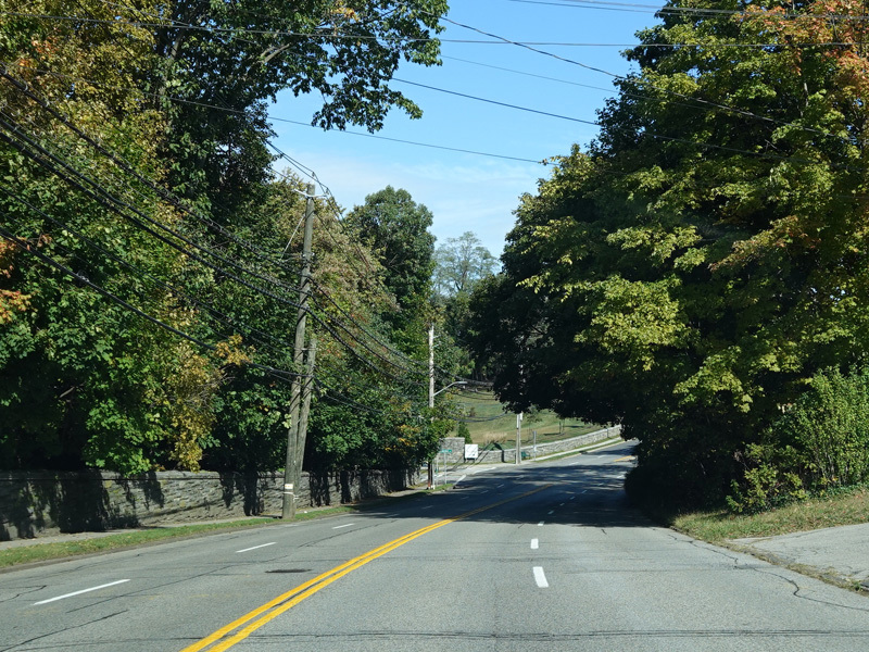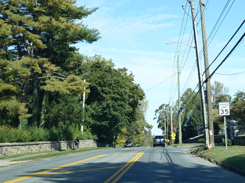 There is a traffic light at Ashburton Avenue. NY 9A splits off to the right here. Once again, there is no signage.