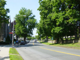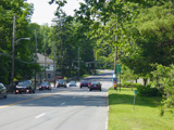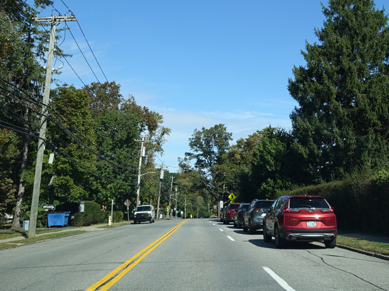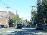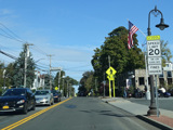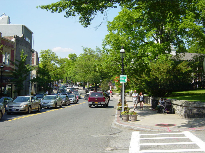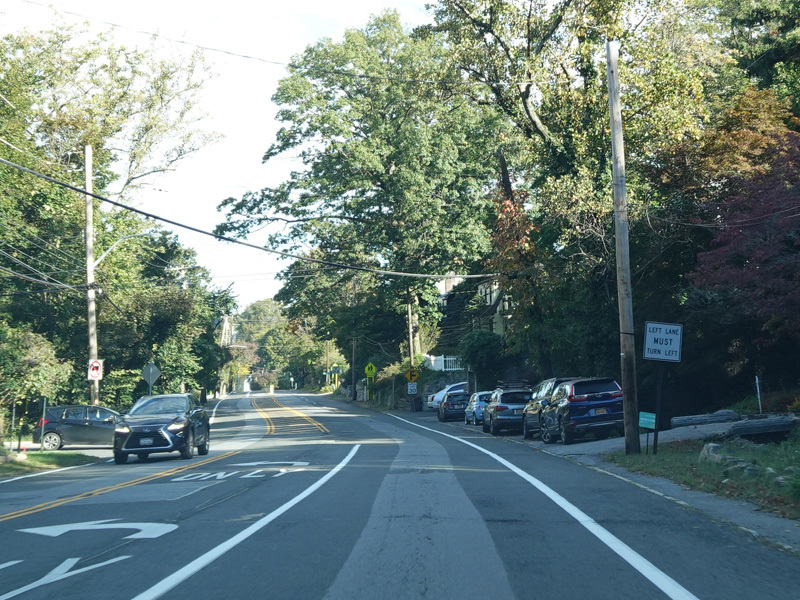 Broadway runs north through Dobbs Ferry as a two-lane undivided road. After a short distance, it widens to four lanes.