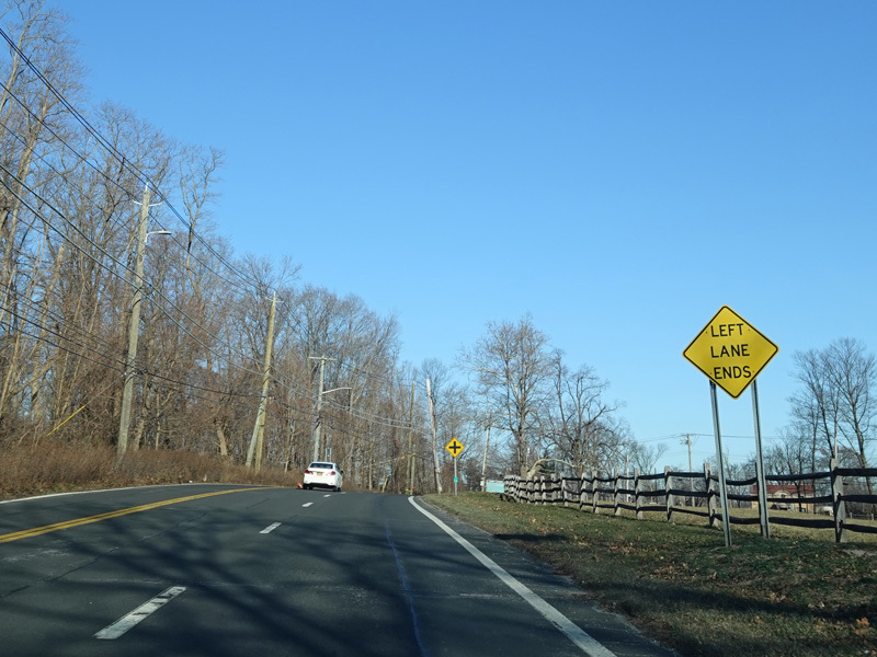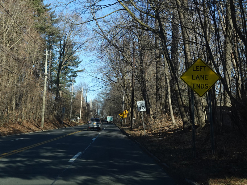 Warburton Avenue (CR 75) begins on the left at a traffic light. The left lane becomes a left turn lane and drops out here.