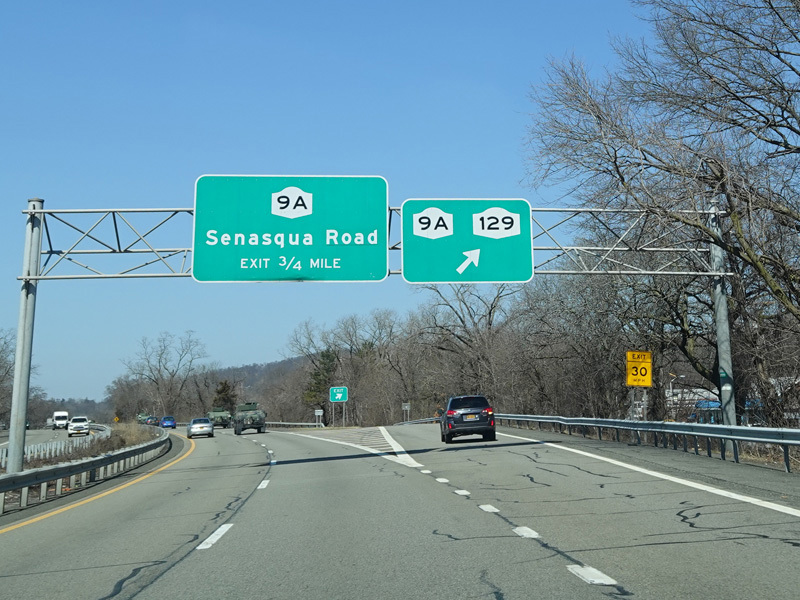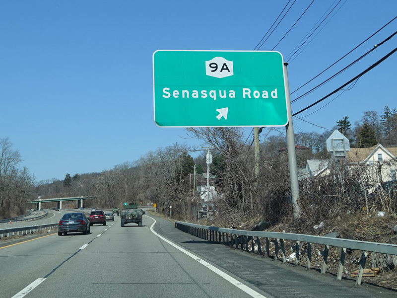 There is an exit for North Riverside Avenue (NY 9A) and Senasqua Road.