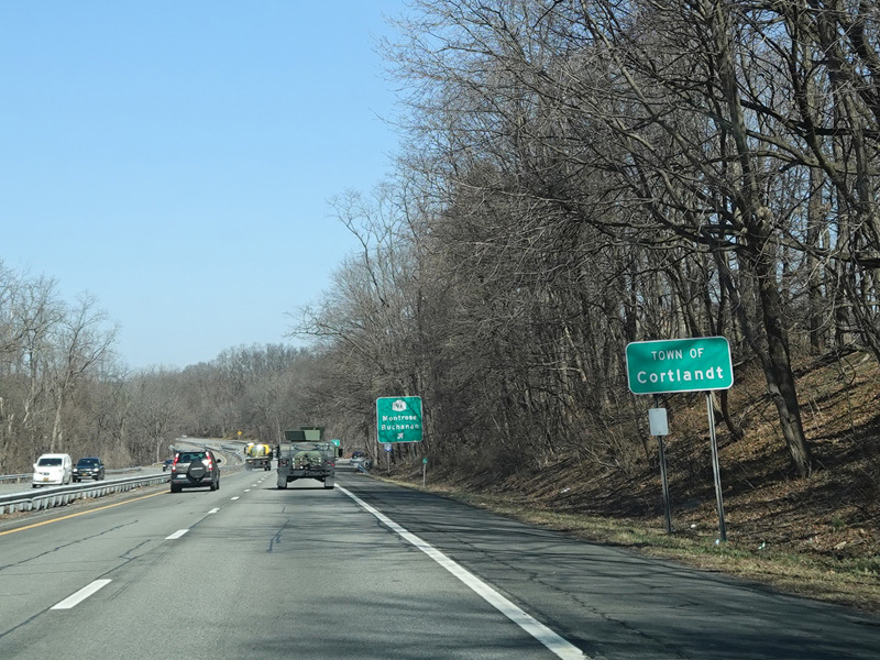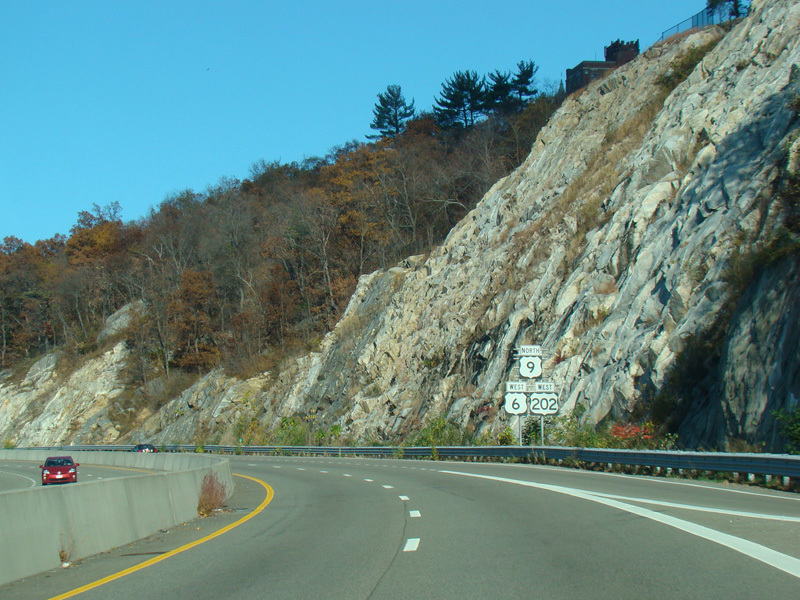The Croton Expressway ends here at a traffic light. The Bear Mountain Parkway begins straight ahead. Turn left to stay on US 9/US 6/US 202.