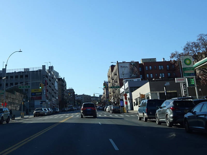 West 179 Street is a westbound one-way street. There is a traffic light at Fort Washington Avenue.