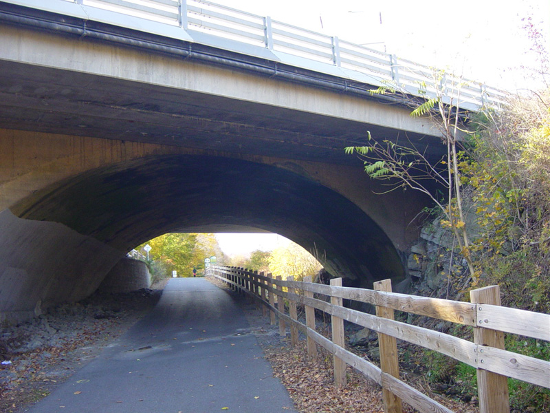 This overpass carries US 9W/US 44/NY 55 over the Hudson Valley Rail Trail. There is a pedestrian/bicycle interchange, complete with route shields for US 9W, except that they goofed and signed it as NY 9W.