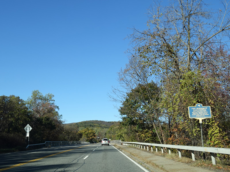 Welcome to Fort Montgomery! Just to the right on the other side of the bridge is the Fort Montgomery State Historic Site, which is the site of an American fort that was destroyed by the British during the American Revolution.