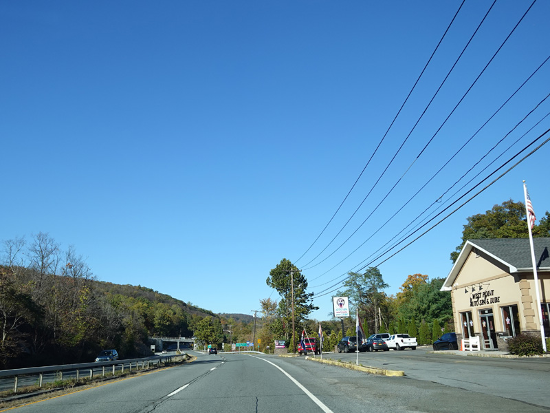 US 9W becomes a divided highway again on the other side of the bridge. There are some traffic lights, as well as an overpass at Blooming Grove Turnpike.