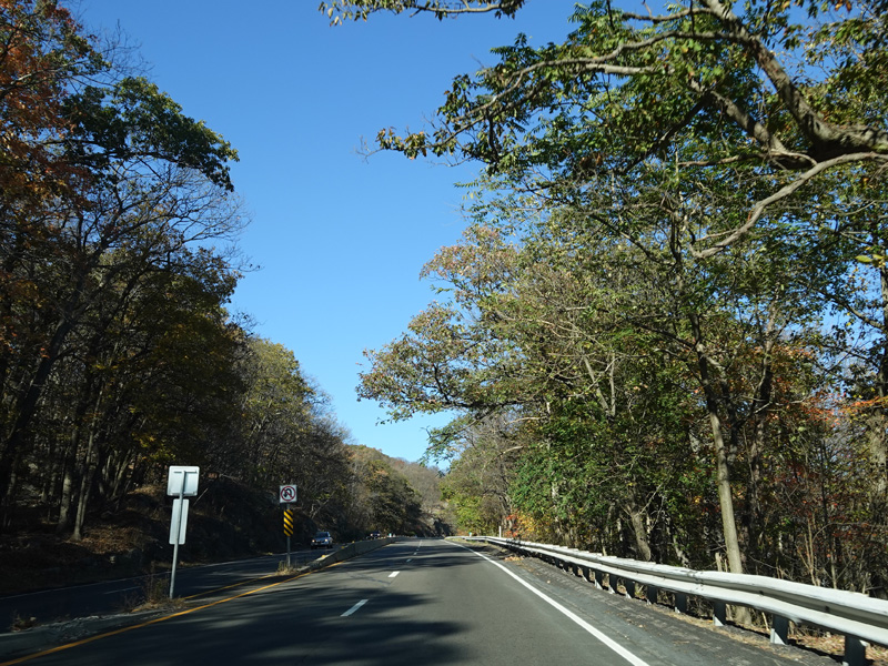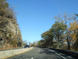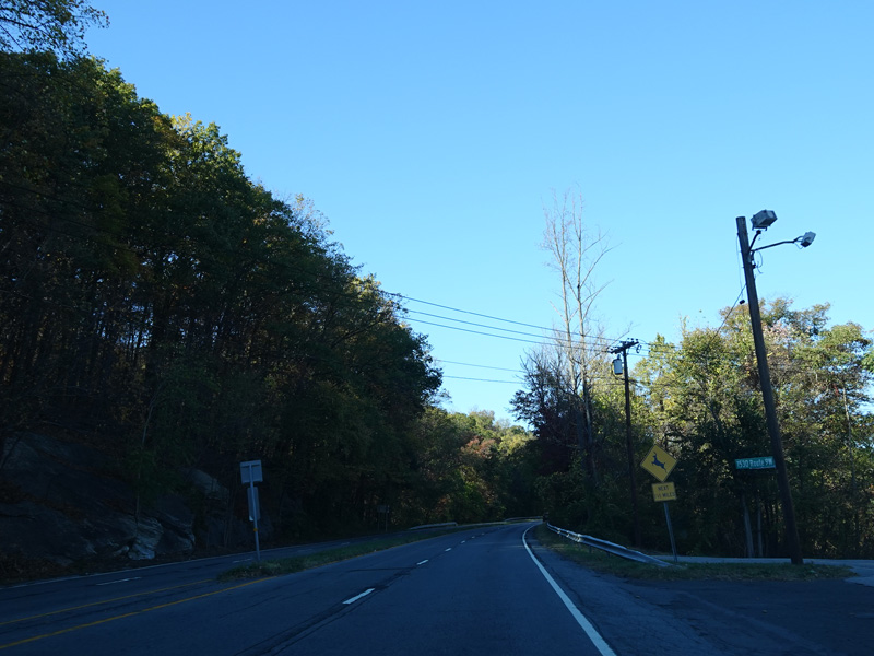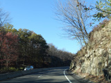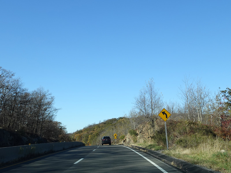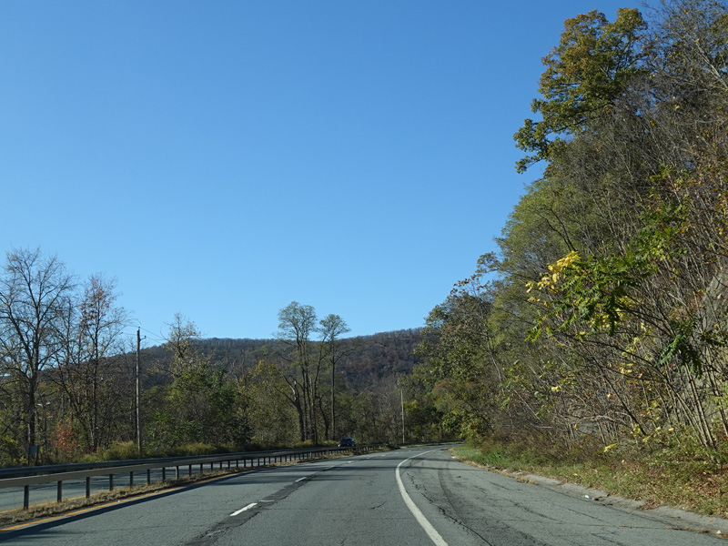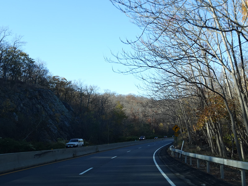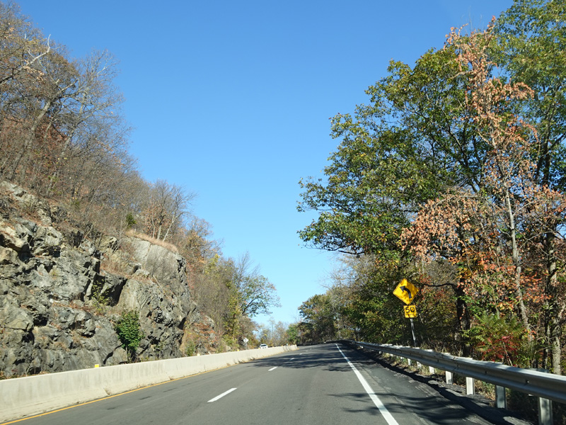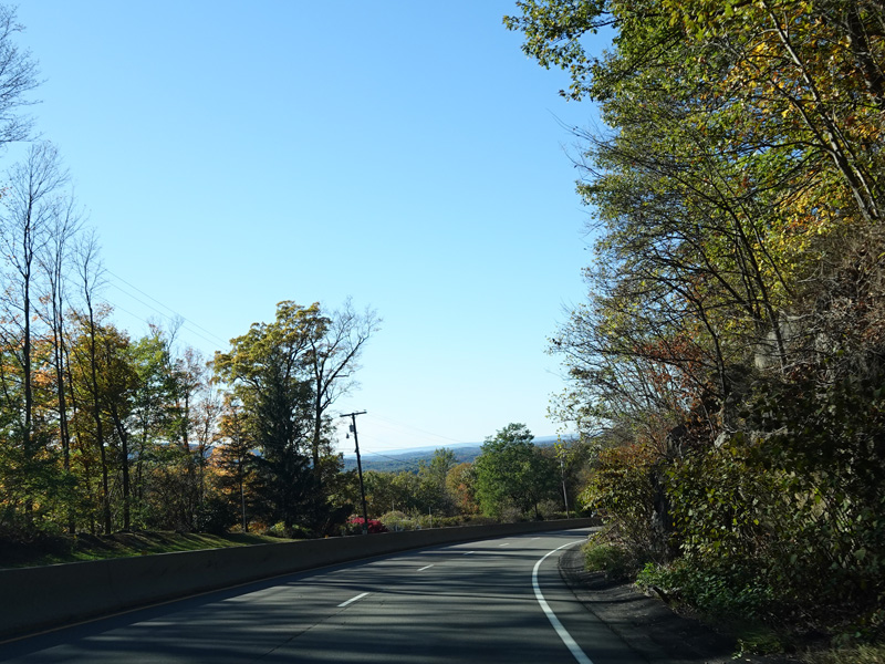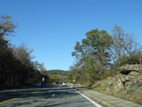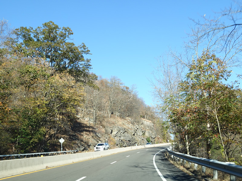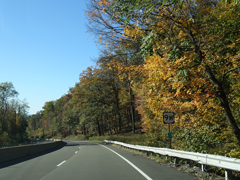 US 9W ascends Storm King Mountain and then comes down the other side. There are no exits on the mountain, although there is a parking area on the way down.