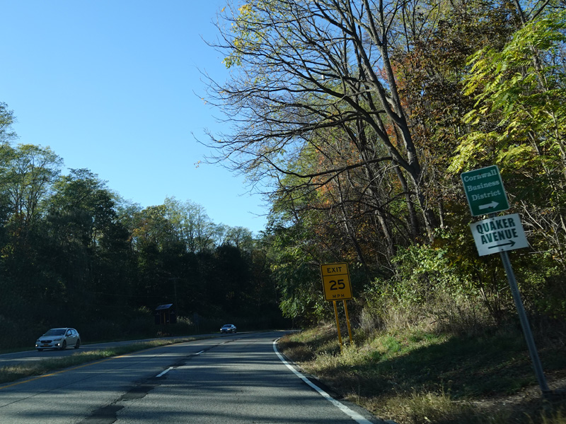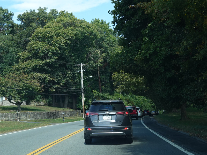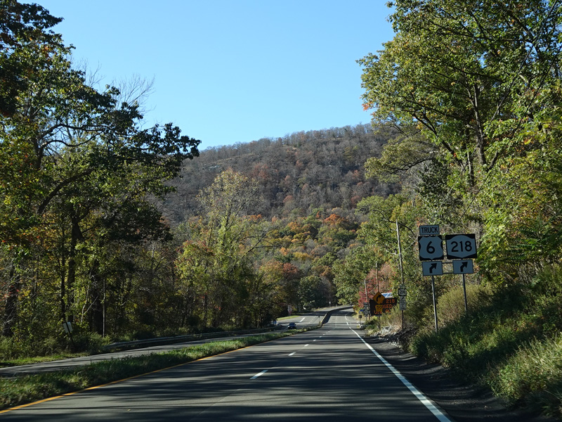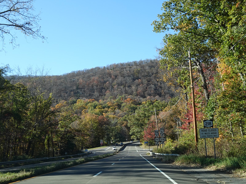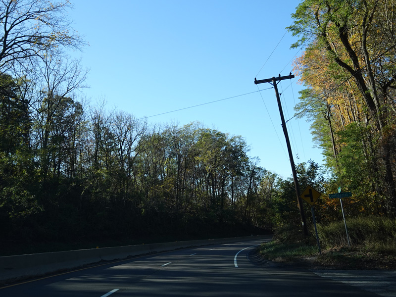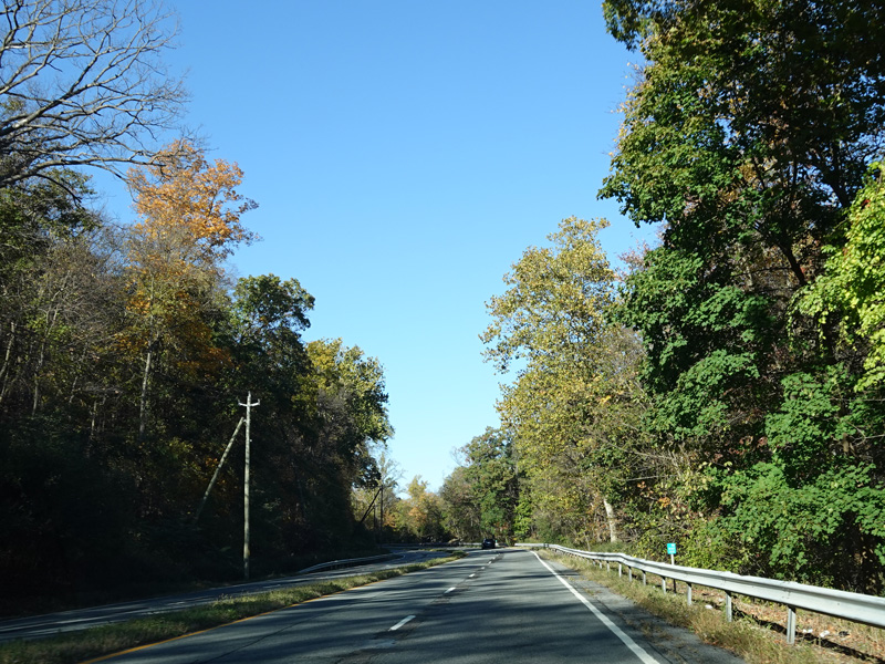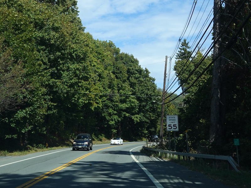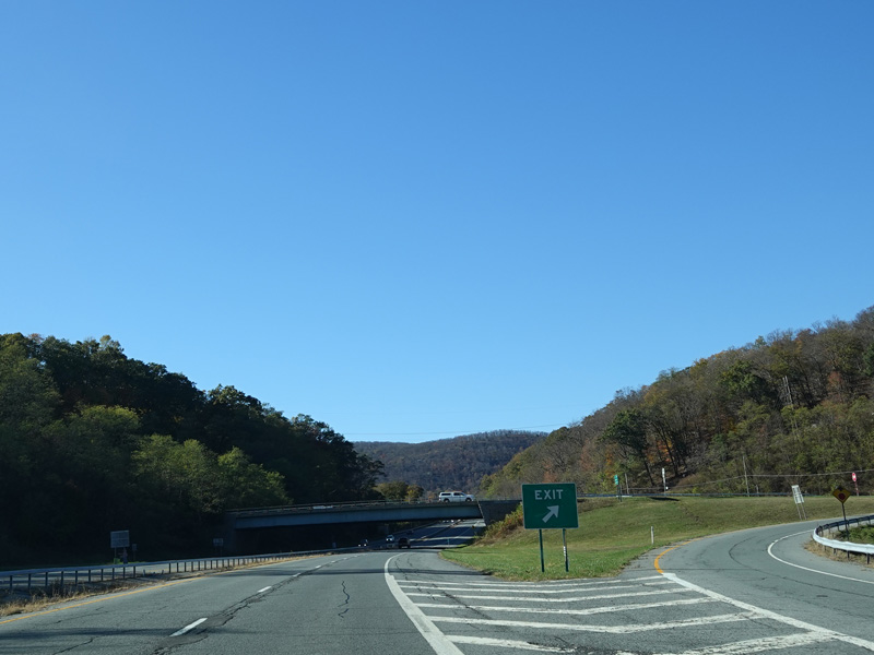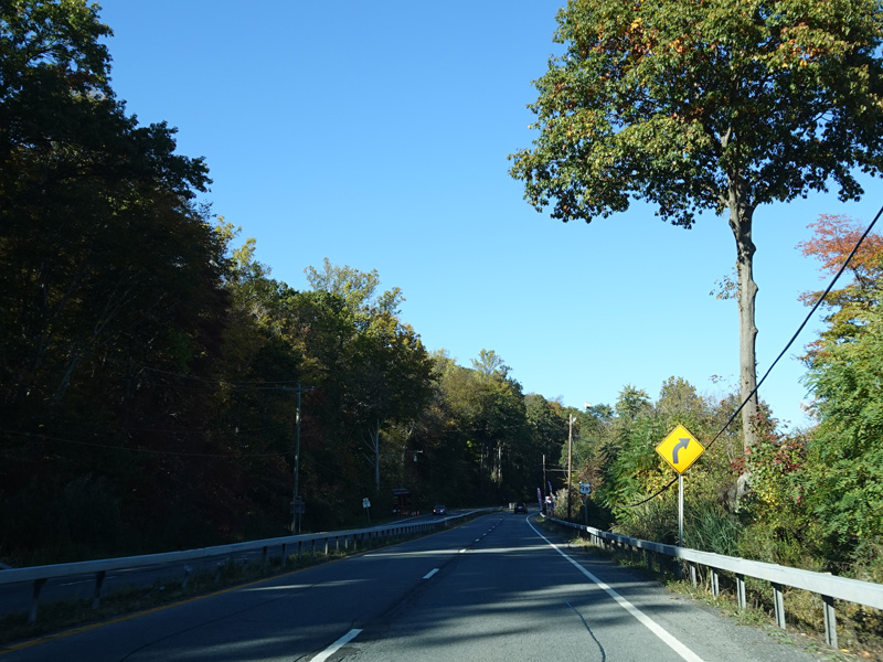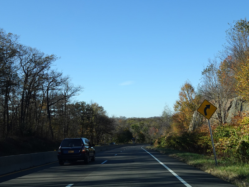 US 9W ascends Storm King Mountain and then comes down the other side. There are no exits on the mountain, although there is a parking area on the way down.