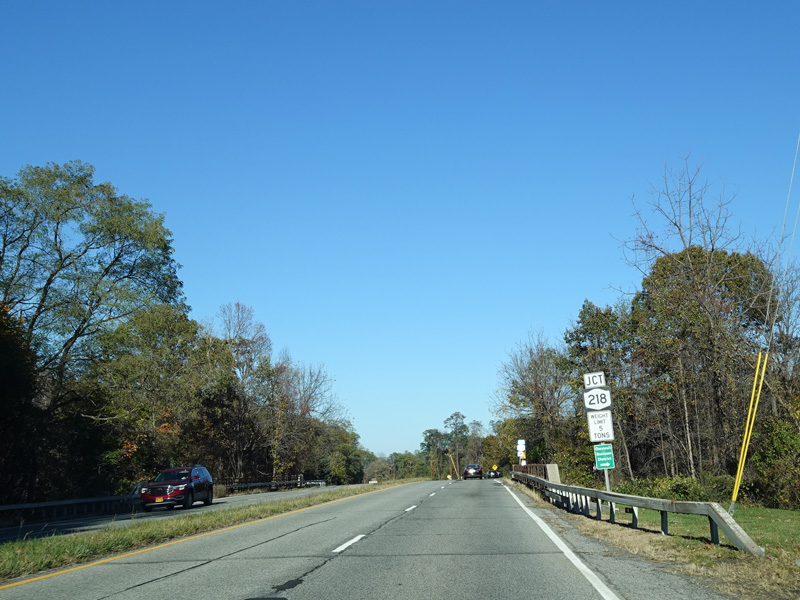 Heading out of town, US 9W gains a divider and becomes an expressway. There is an exit for Main Street (NY 218), which begins here. It is the first of three consecutive exits for NY 218.