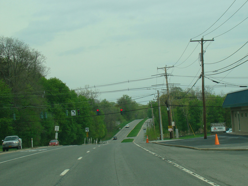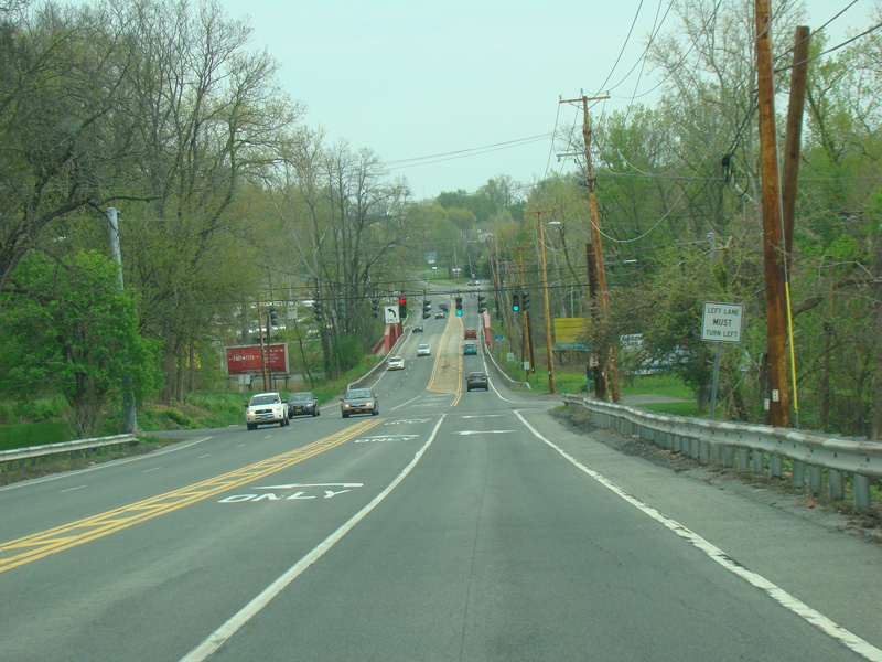 US 9W narrows down to two lanes. There is a traffic light at Laurel Avenue.