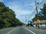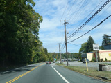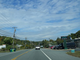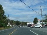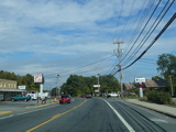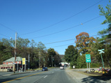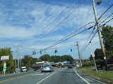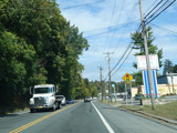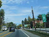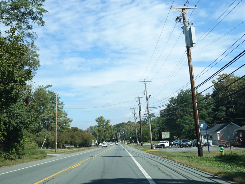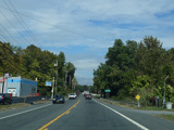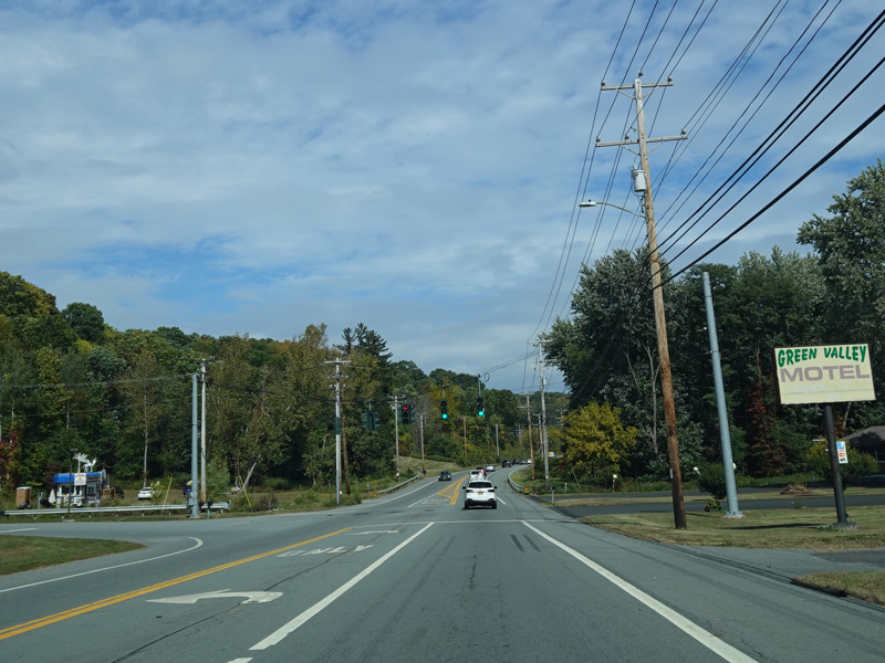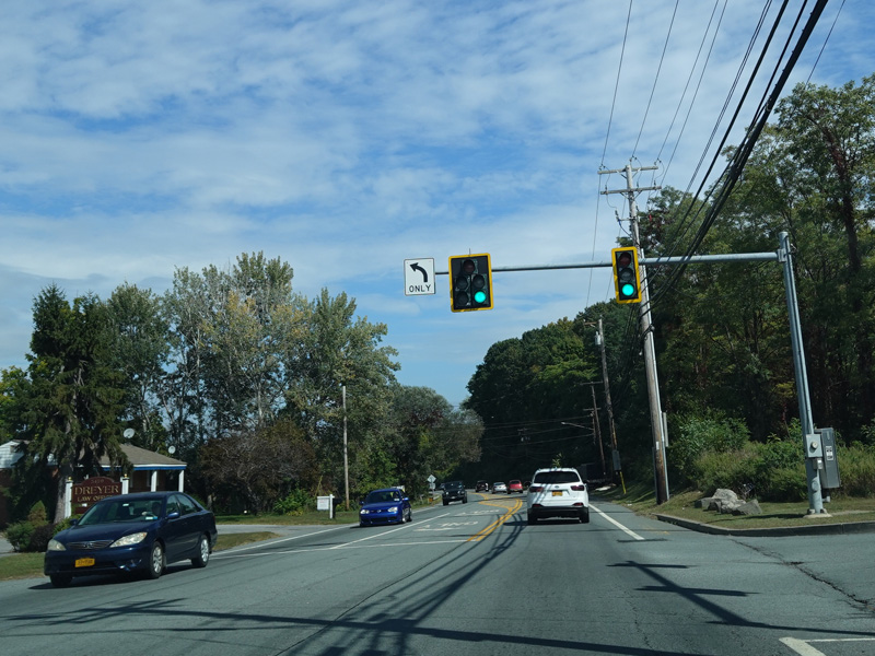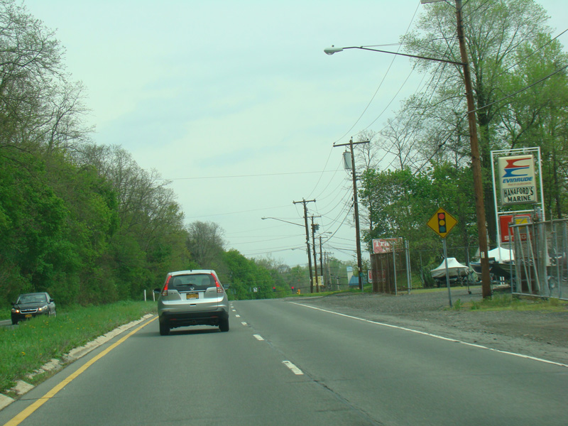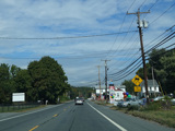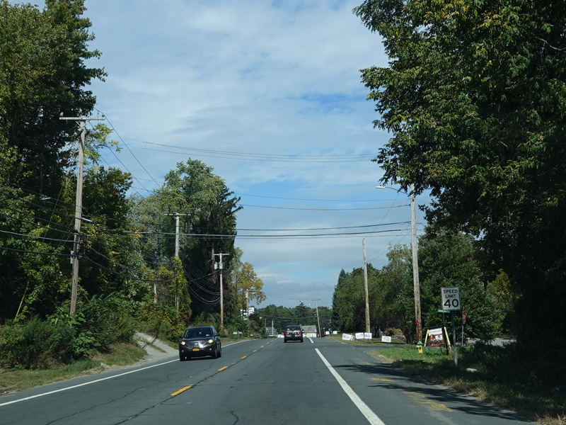 US 9W runs north through Fort Montgomery as a four-lane undivided road. There are a few traffic lights along this stretch.