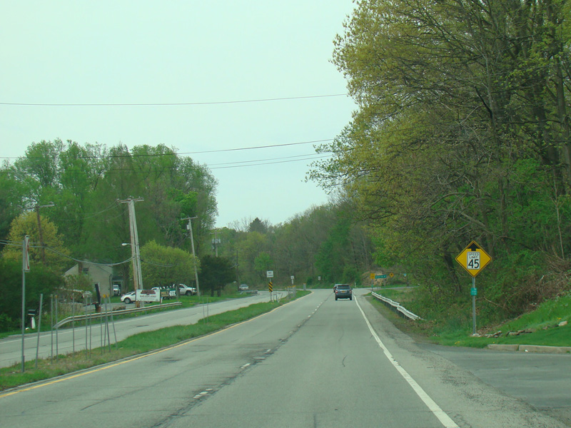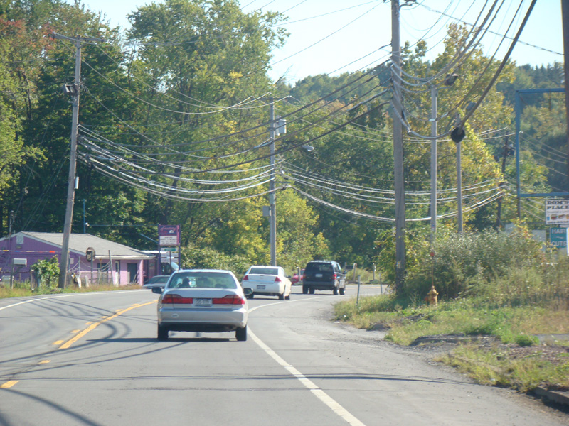 The highway ends and US 9W continues south through Fort Montgomery. The speed limit drops and the divider ends. There are a few traffic lights along the section.