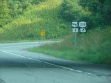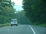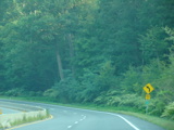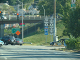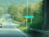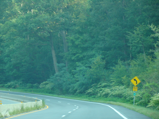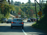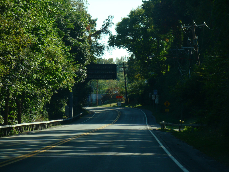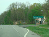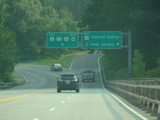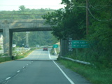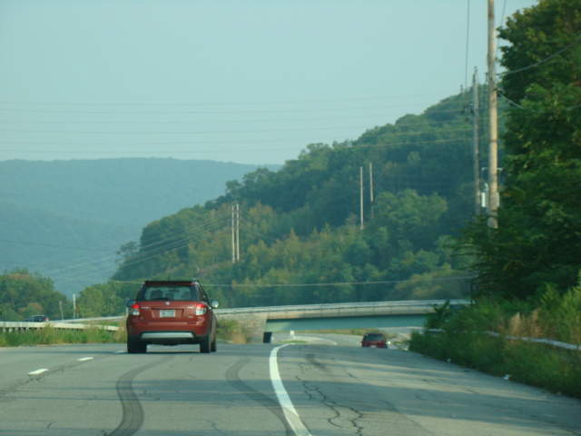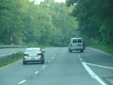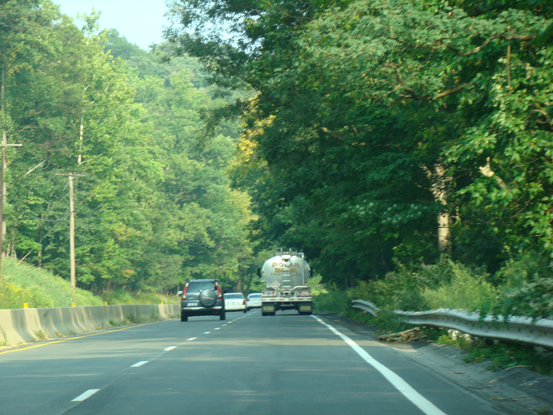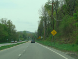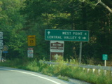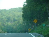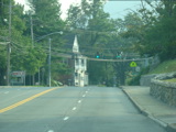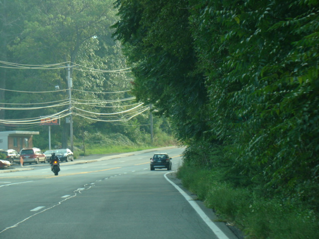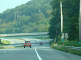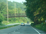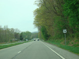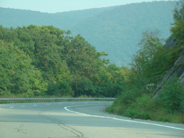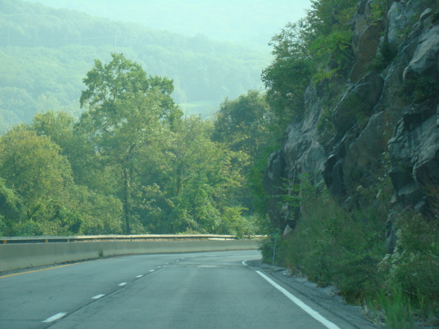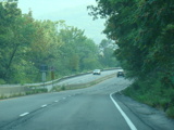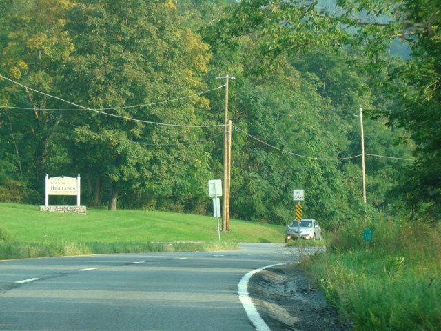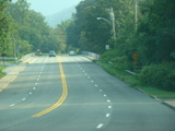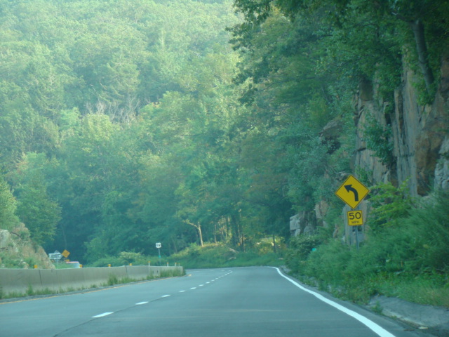 US 9W ascends Storm King Mountain and then comes back down the other side. The surrounding mountains of the Hudson Highlands are visible while coming down the mountain.